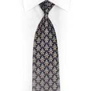 Gold Cartouche On Navy Blue Rhinestone Silk Necktie