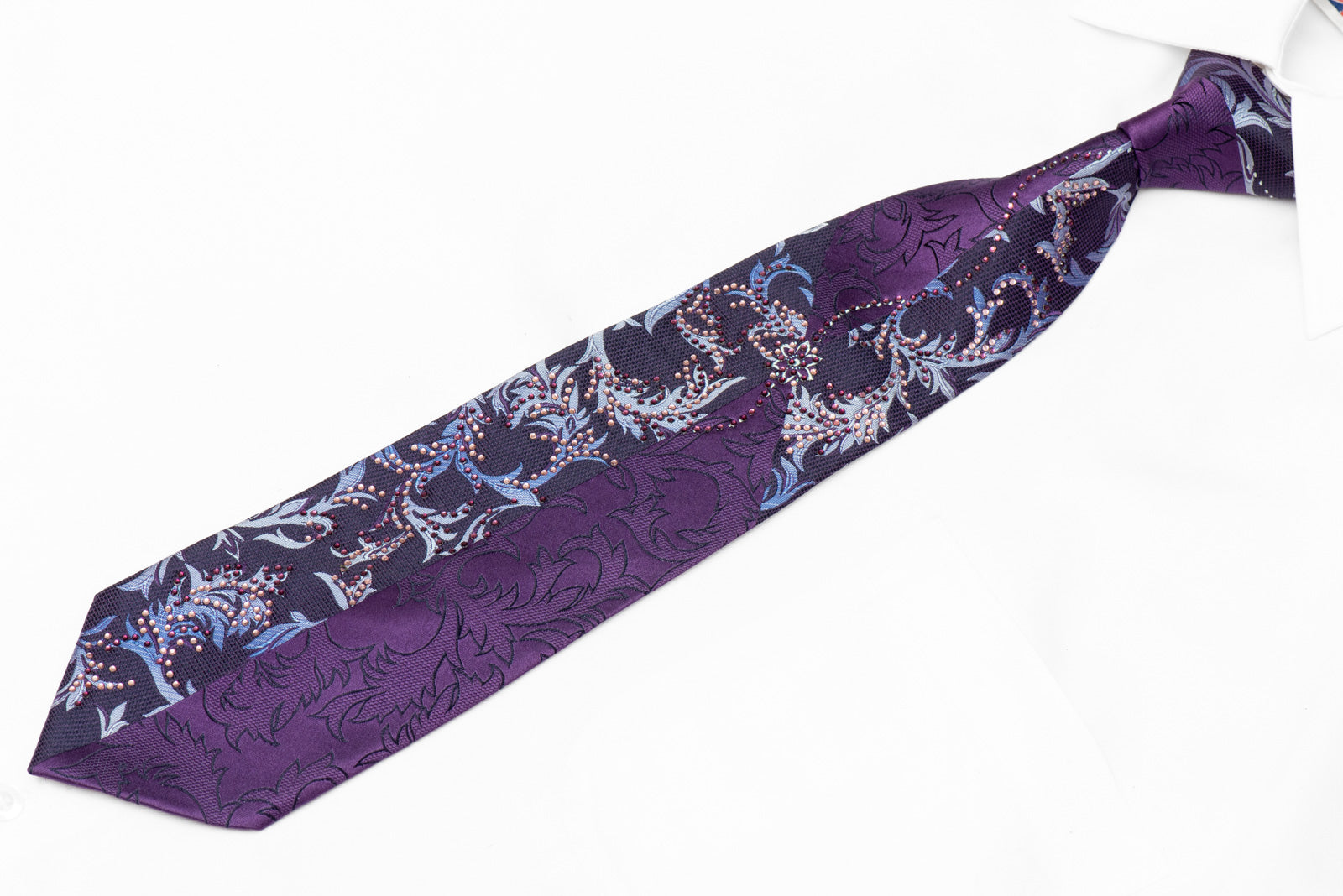 Material - SilkDesign - AcnthusColor - Blue, PurpleLength - Classic (48 in.-60 in.)(145cm-153 cm)Width - Classic (3 1/4 in.-3 3/4 in.)(8 cm-9.5 cm)Special Features - Rhinestones