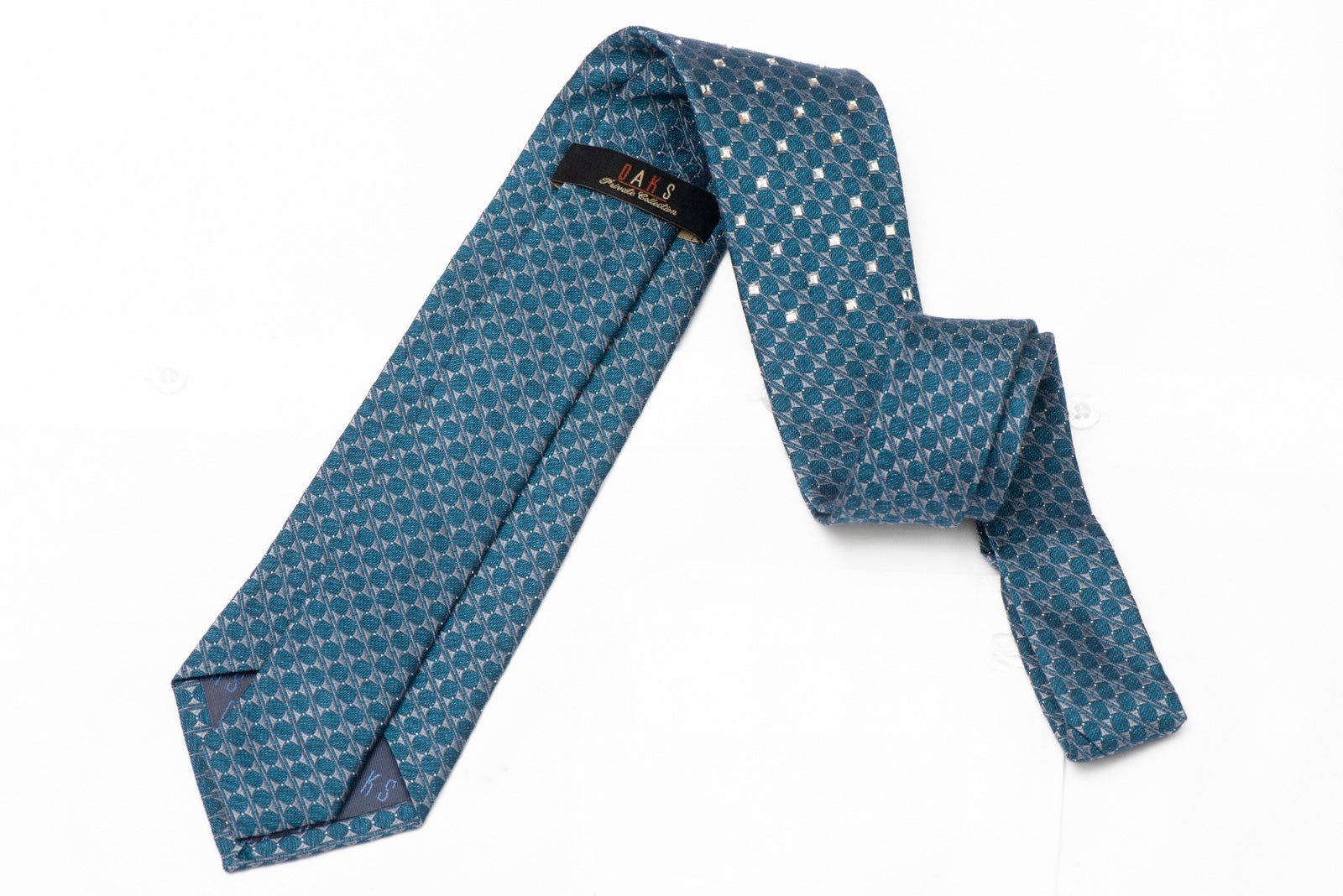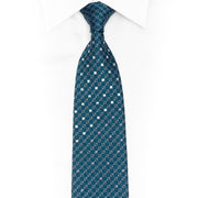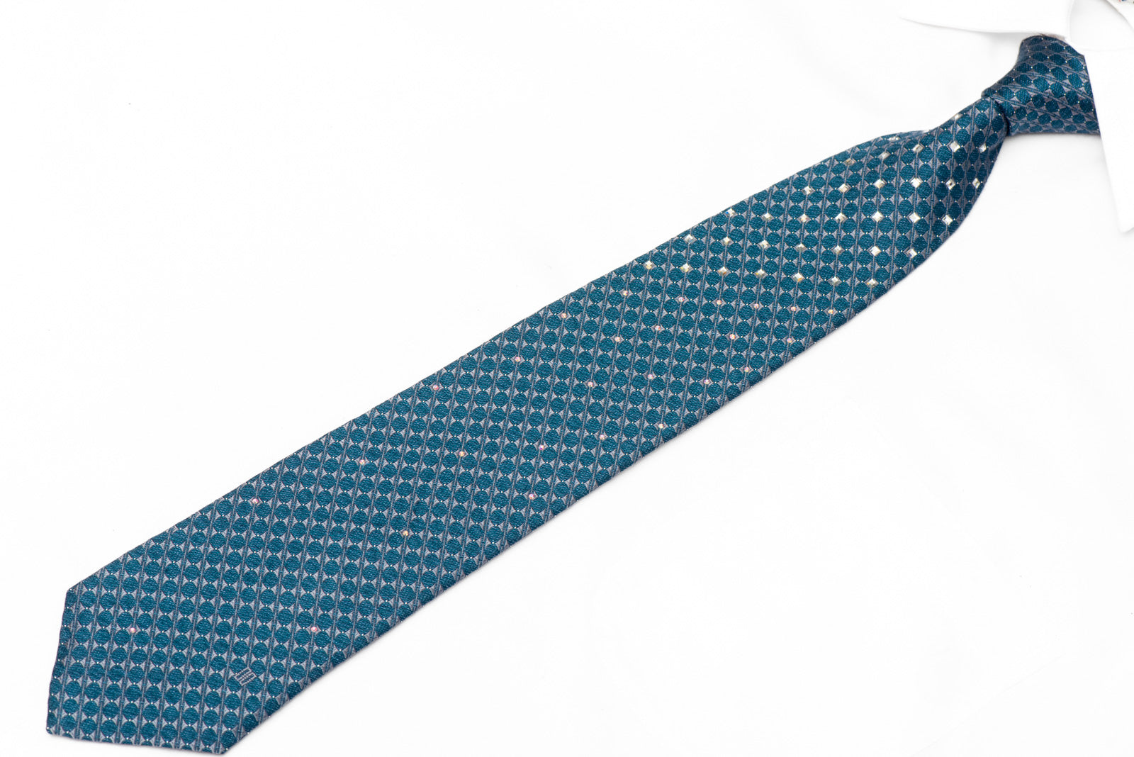 Geometric On Teal Rhinestone Silk Necktie With Silver