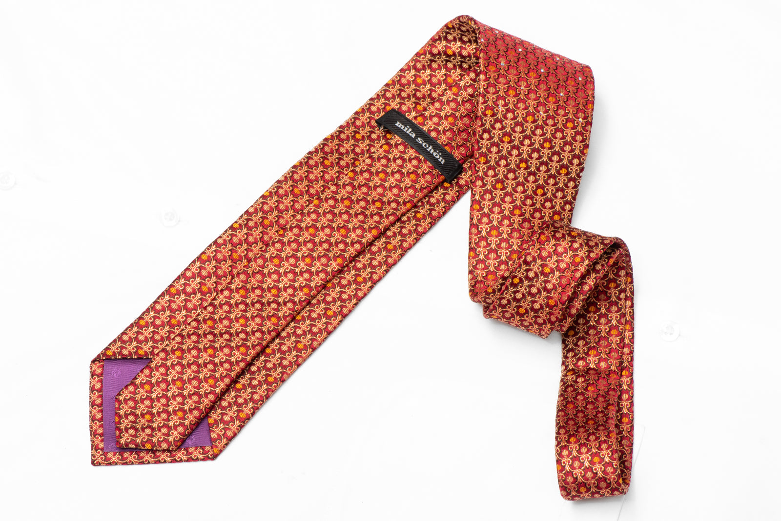 Gold Cartouche On Burgundy Rhinestone Silk Necktie