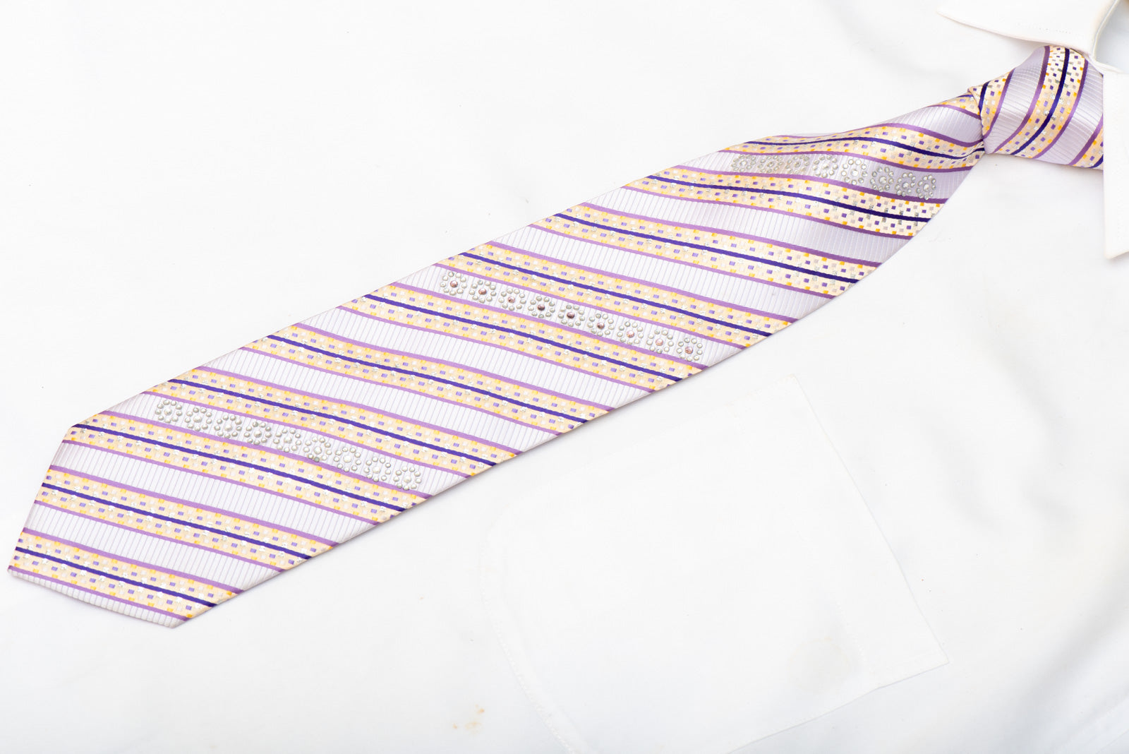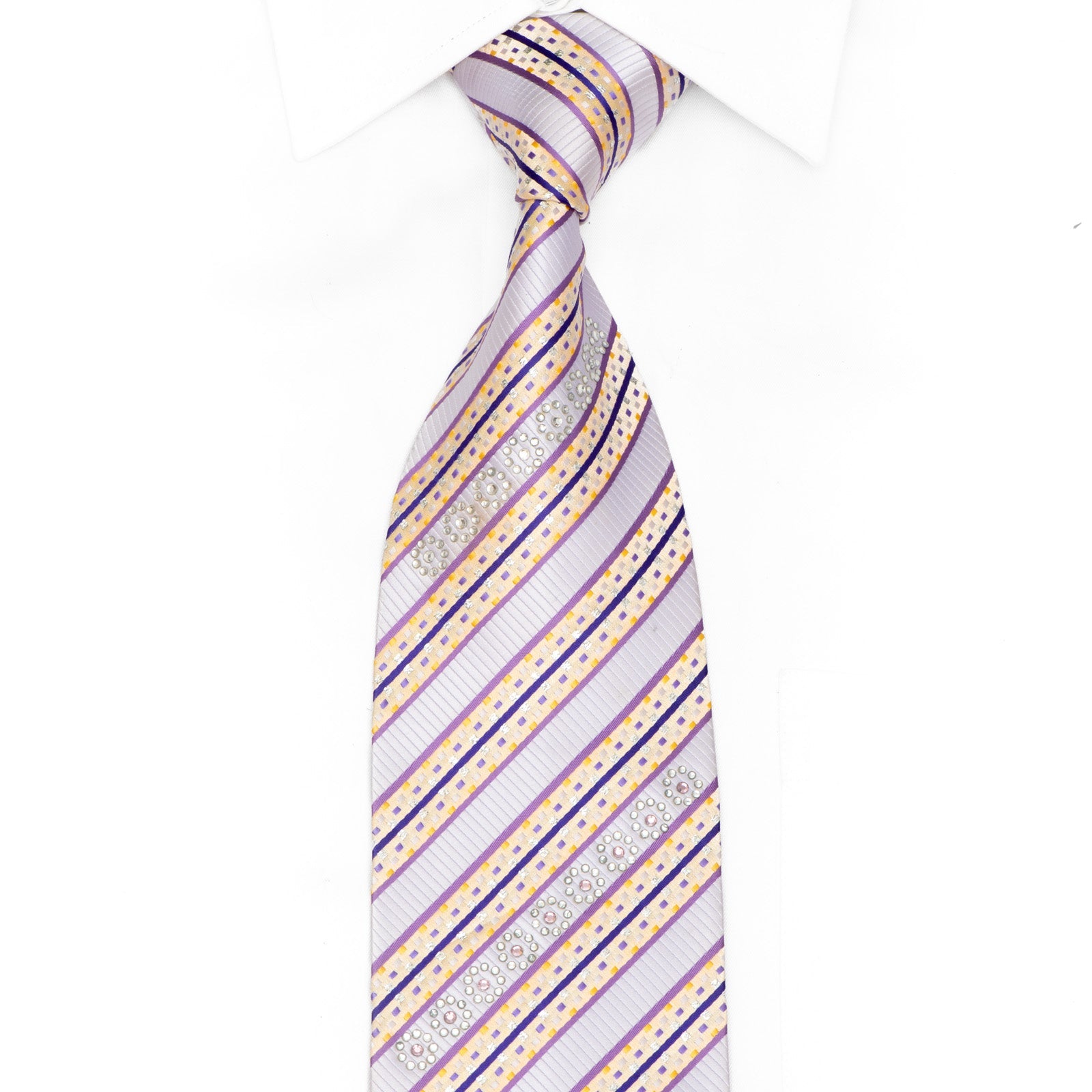 Mauve Off White Striped Rhinestone Tie With Silver Sparkles