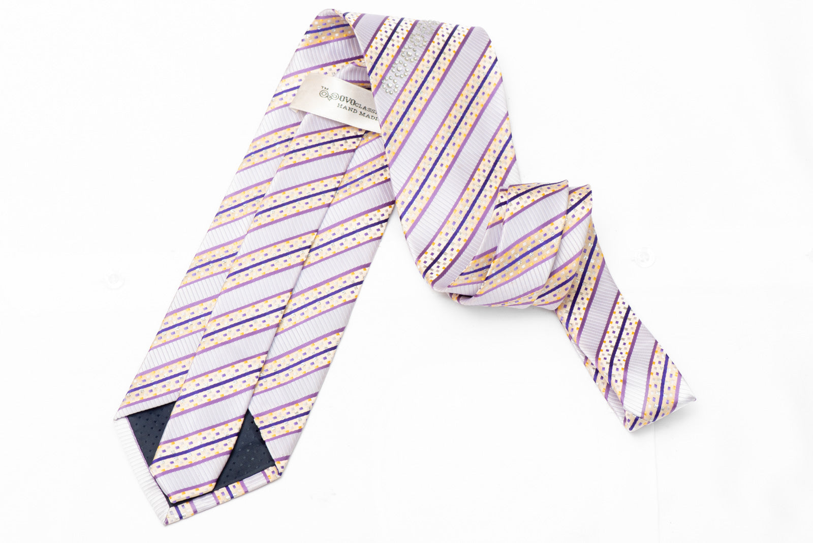Elevate your style with this Mauve off-white tie featuring elegant stripes adorned with rhinestones and subtle silver sparkles.