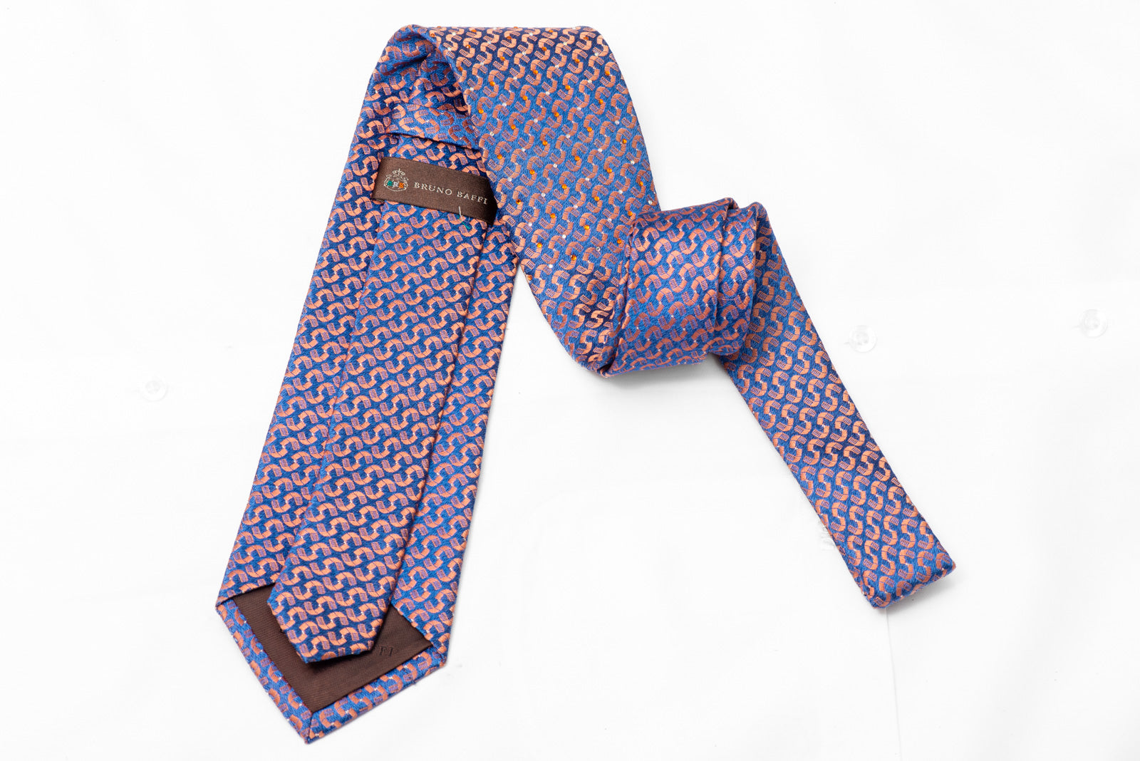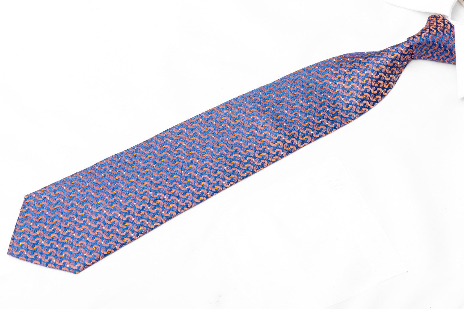 Orange Geometric On Blue Rhinestone Tie With Silver