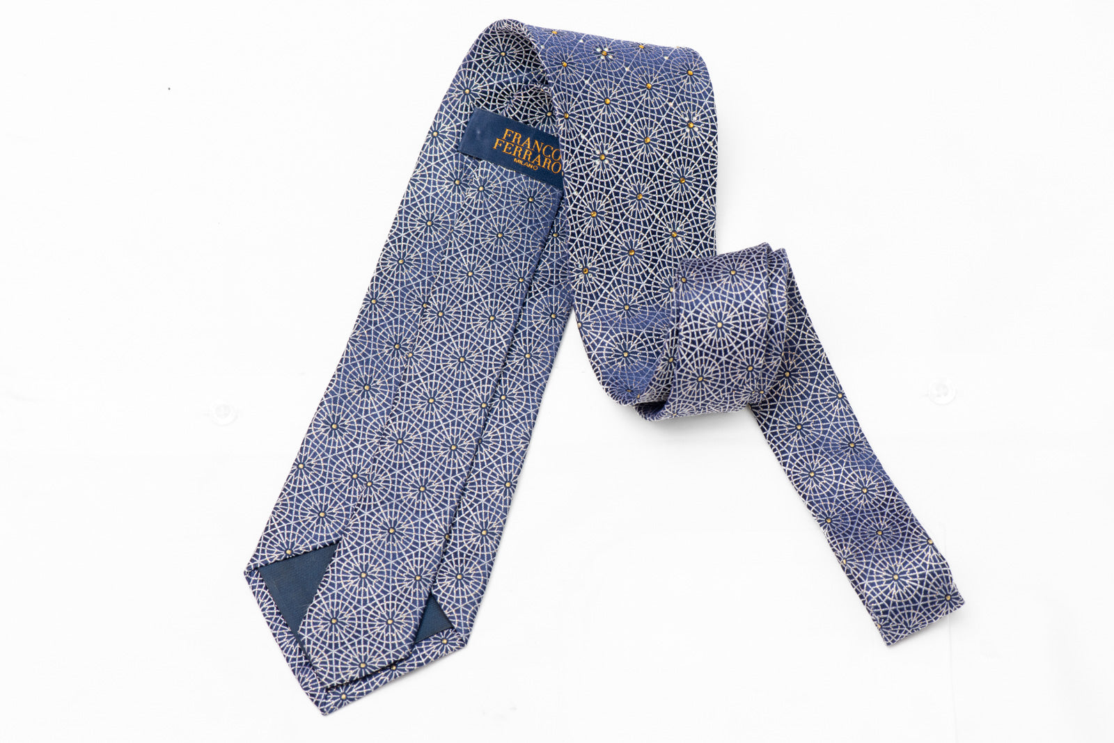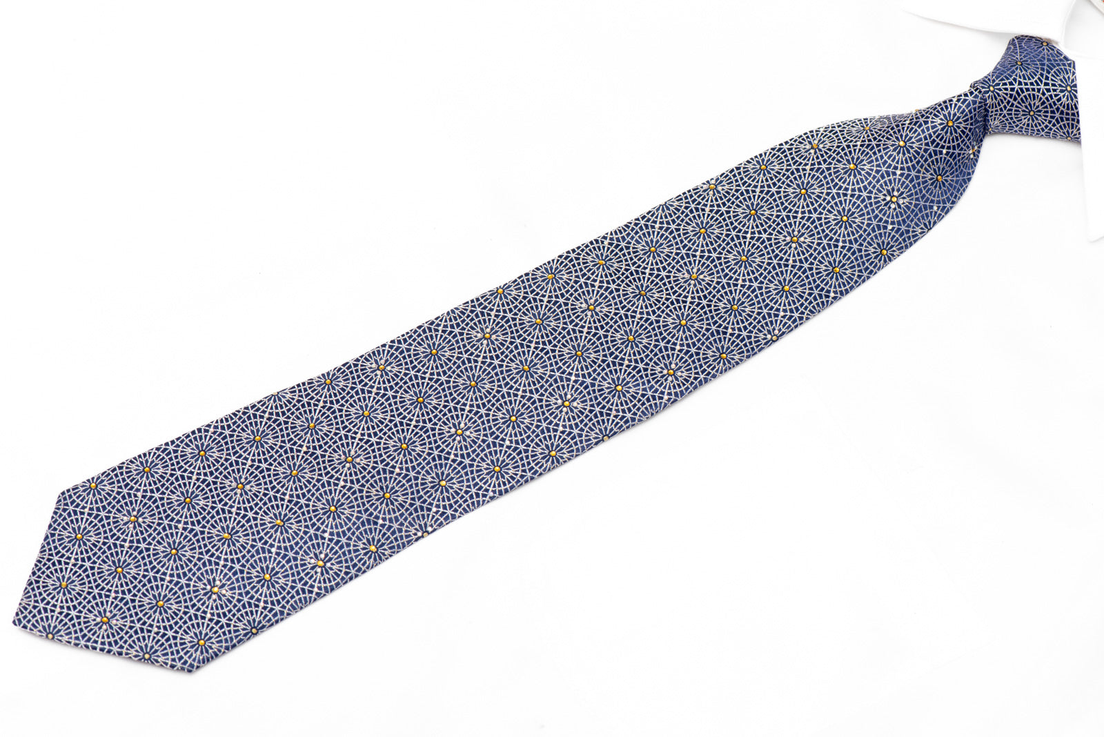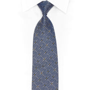 Silver Geometric Trellis On Blue Rhinestone Silk Necktie