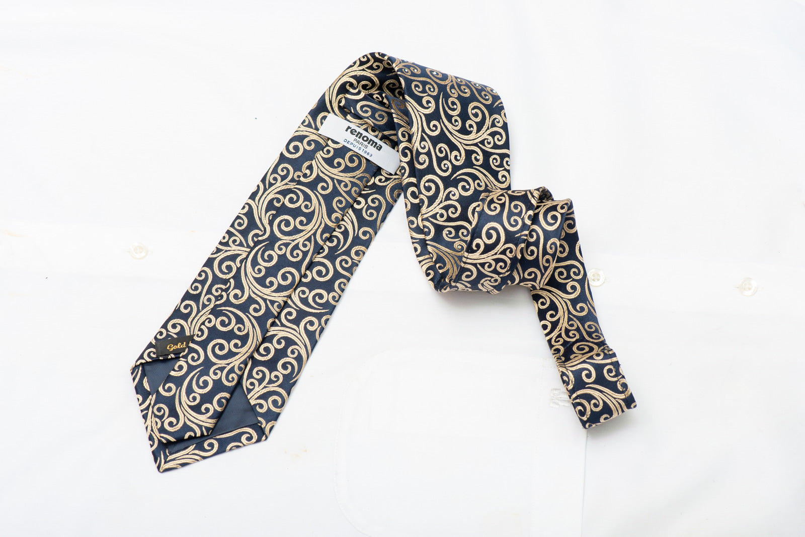 Material - SilkDesign - ScrollsColor - Blue, GoldLength - Classic (48 in.-60 in.)(145cm-153 cm)Width - Classic (3 1/4 in.-3 3/4 in.)(8 cm-9.5 cm)Special Features - Rhinestones, Silver Sparkles