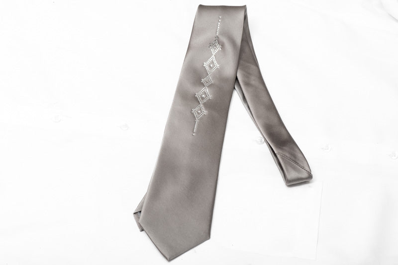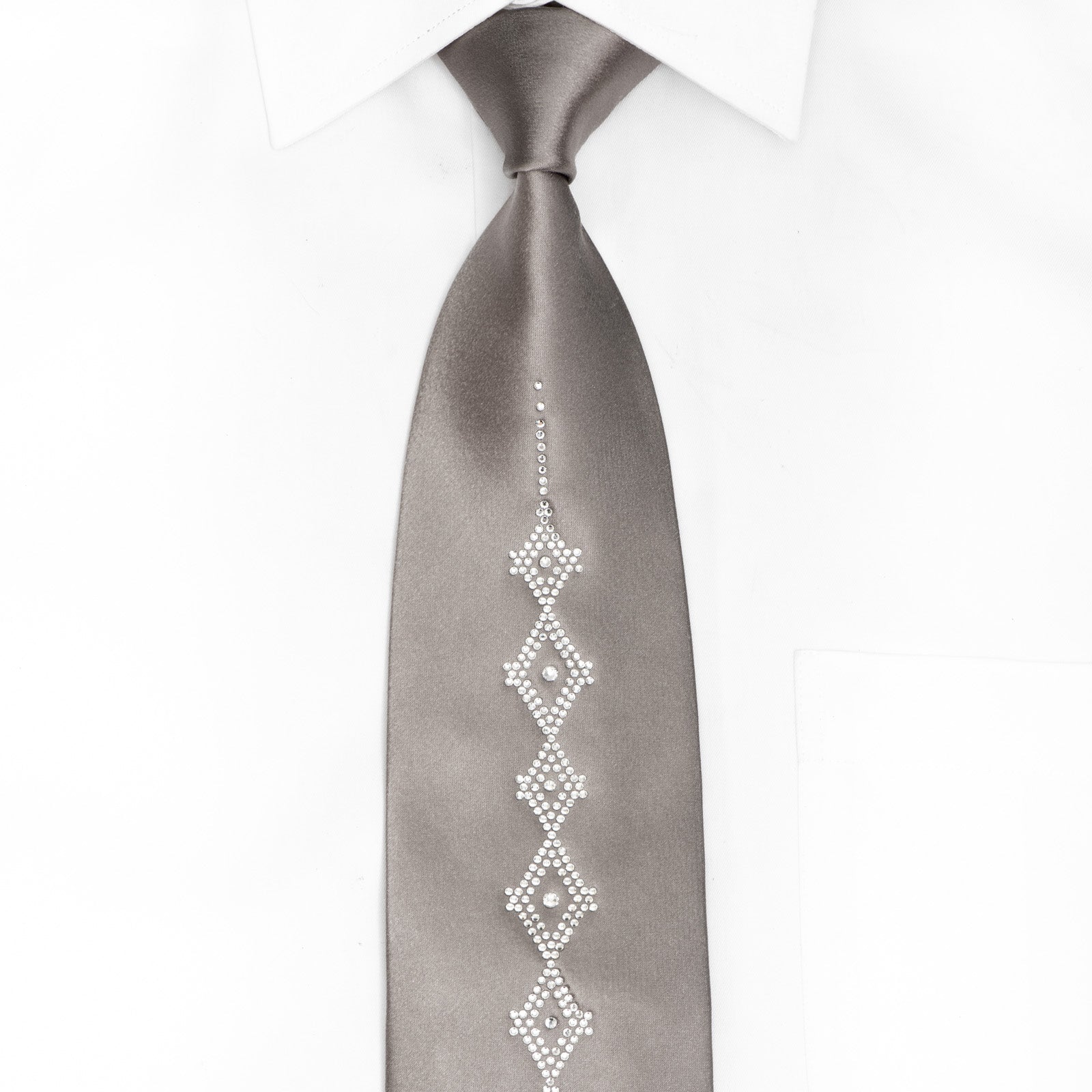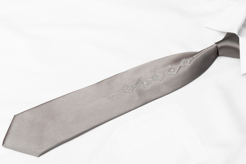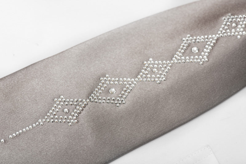 Material - SilkDesign - GeometricColor - SilverLength - Classic (48 in.-60 in.)(145cm-153 cm)Width - Classic (3 1/4 in.-3 3/4 in.)(8 cm-9.5 cm)Special Features - Rhinestones