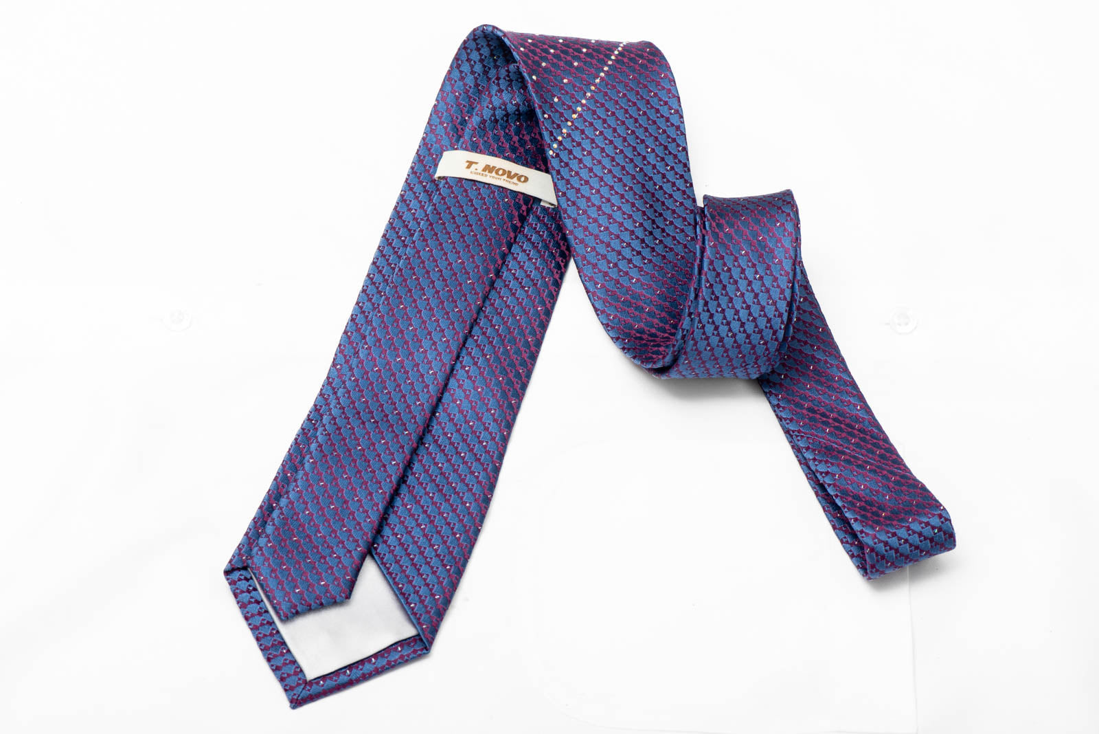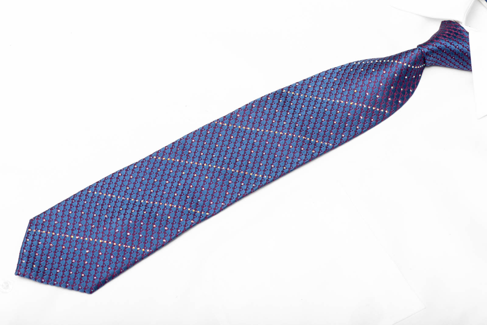 Purple Geometric On Violet Rhinestone Silk Tie - 1