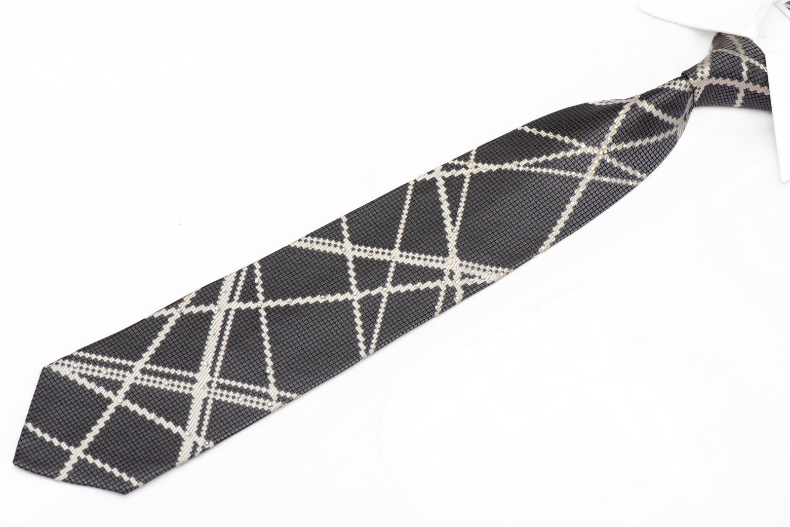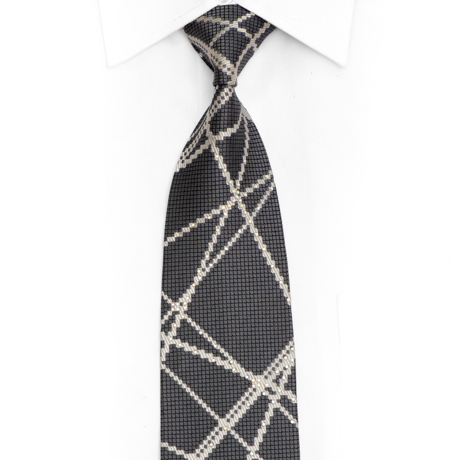 Material - SilkDesign - LinesColor - SilverLength - Classic (48 in.-60 in.)(145cm-153 cm)Width - Classic (3 1/4 in.-3 3/4 in.)(8 cm-9.5 cm)Special Features - Rhinestones