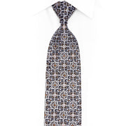 Silver Ornate Design On Navy Rhinestone Silk Necktie