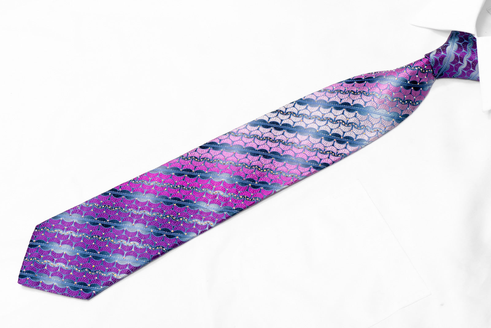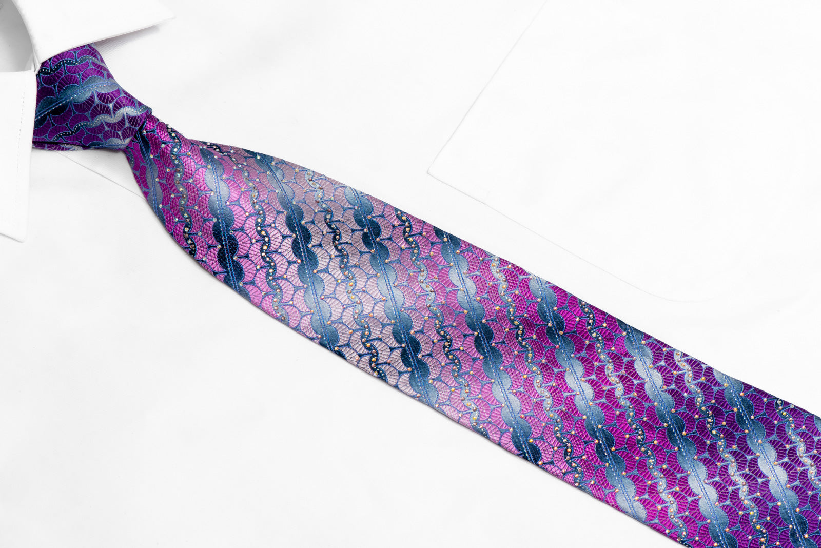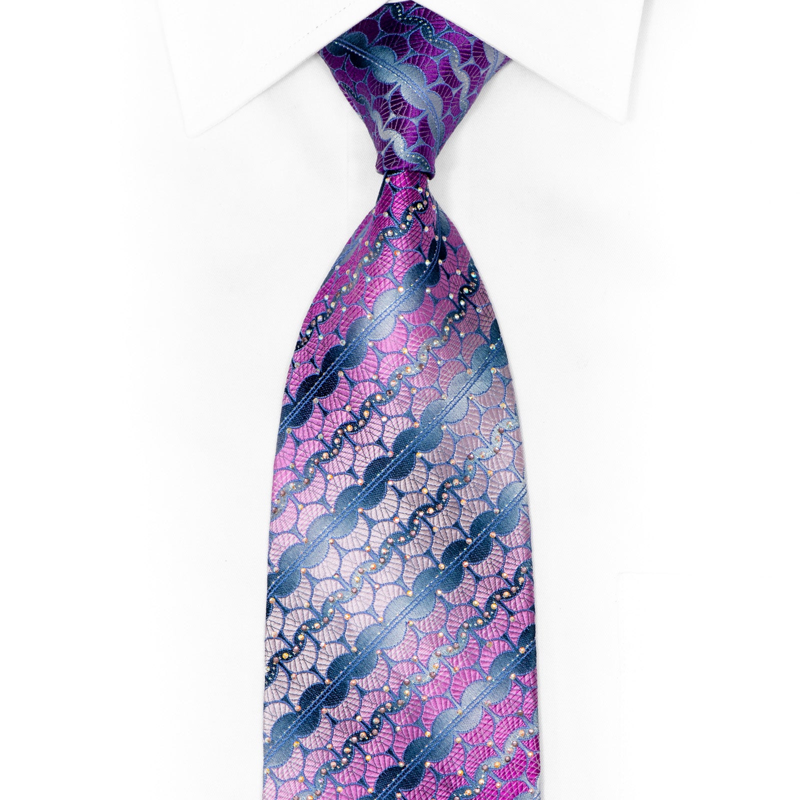 Pink Purple Geometric On Silver Rhinestone Silk Necktie With Sparkles