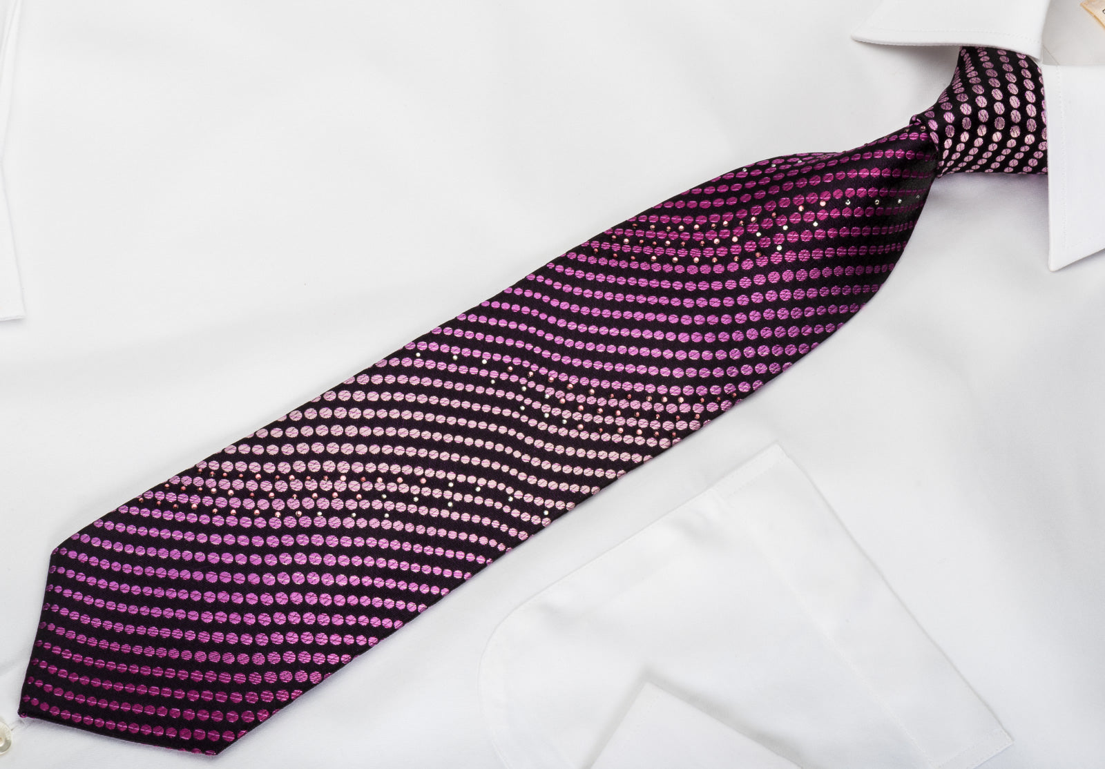 Material - SilkDesign - DotsColor - PurpleLength - Classic (57 in.-60 in.)(145 cm-153 cm)Width - Classic (3 1/4 in.-3 3/4 in.)(8 cm-9.5 cm)Special Features - Purple Rhinestones, White Rhinestones