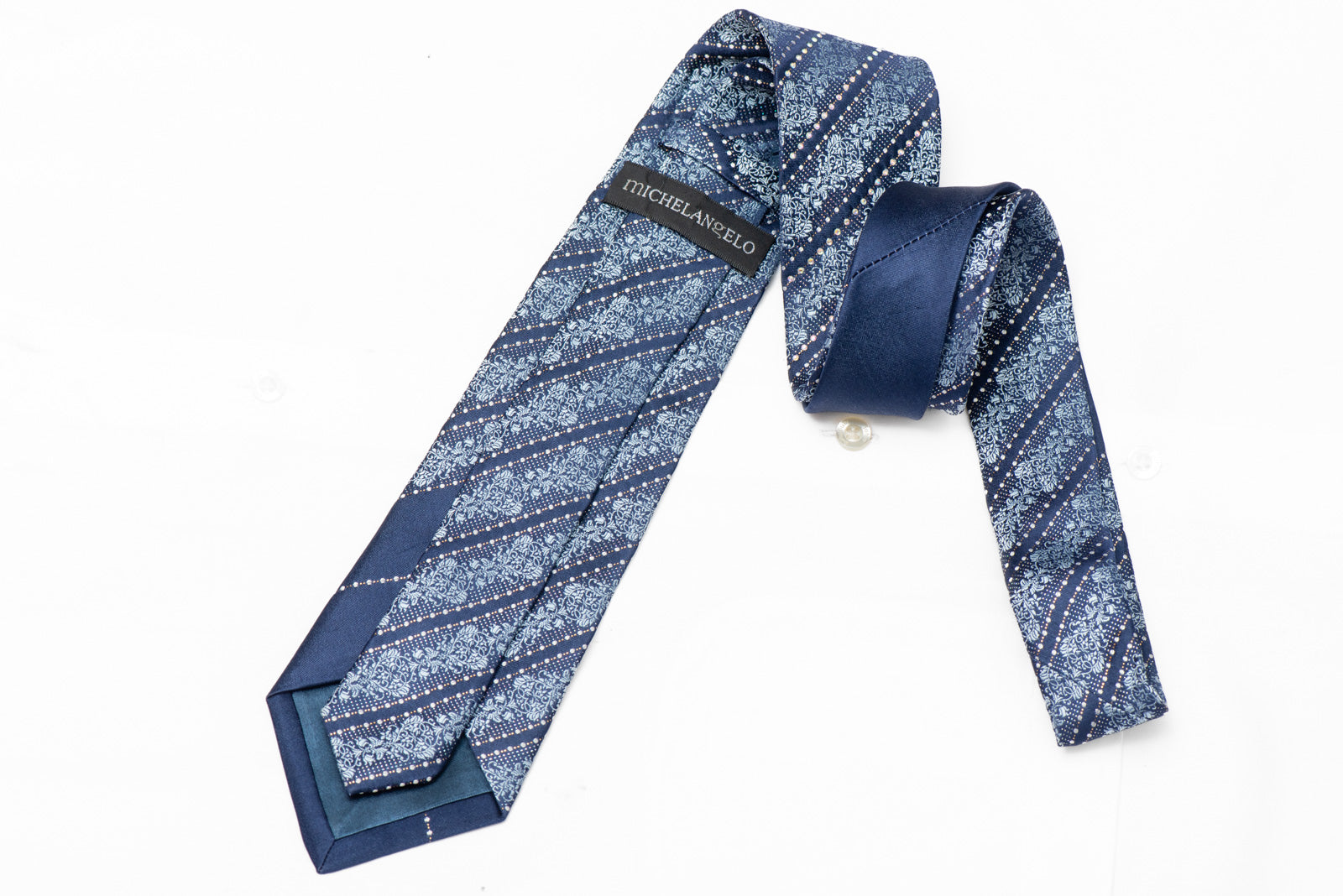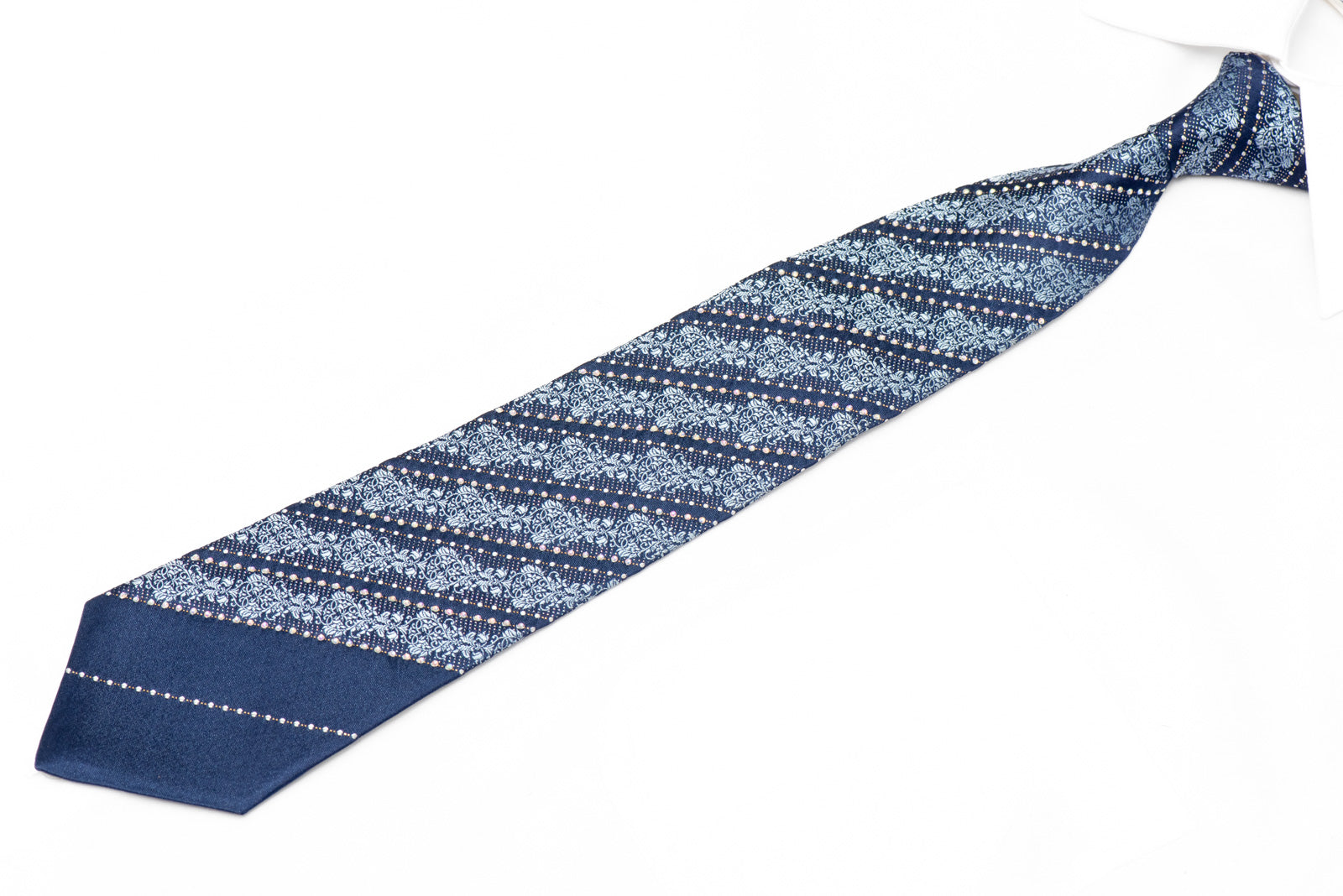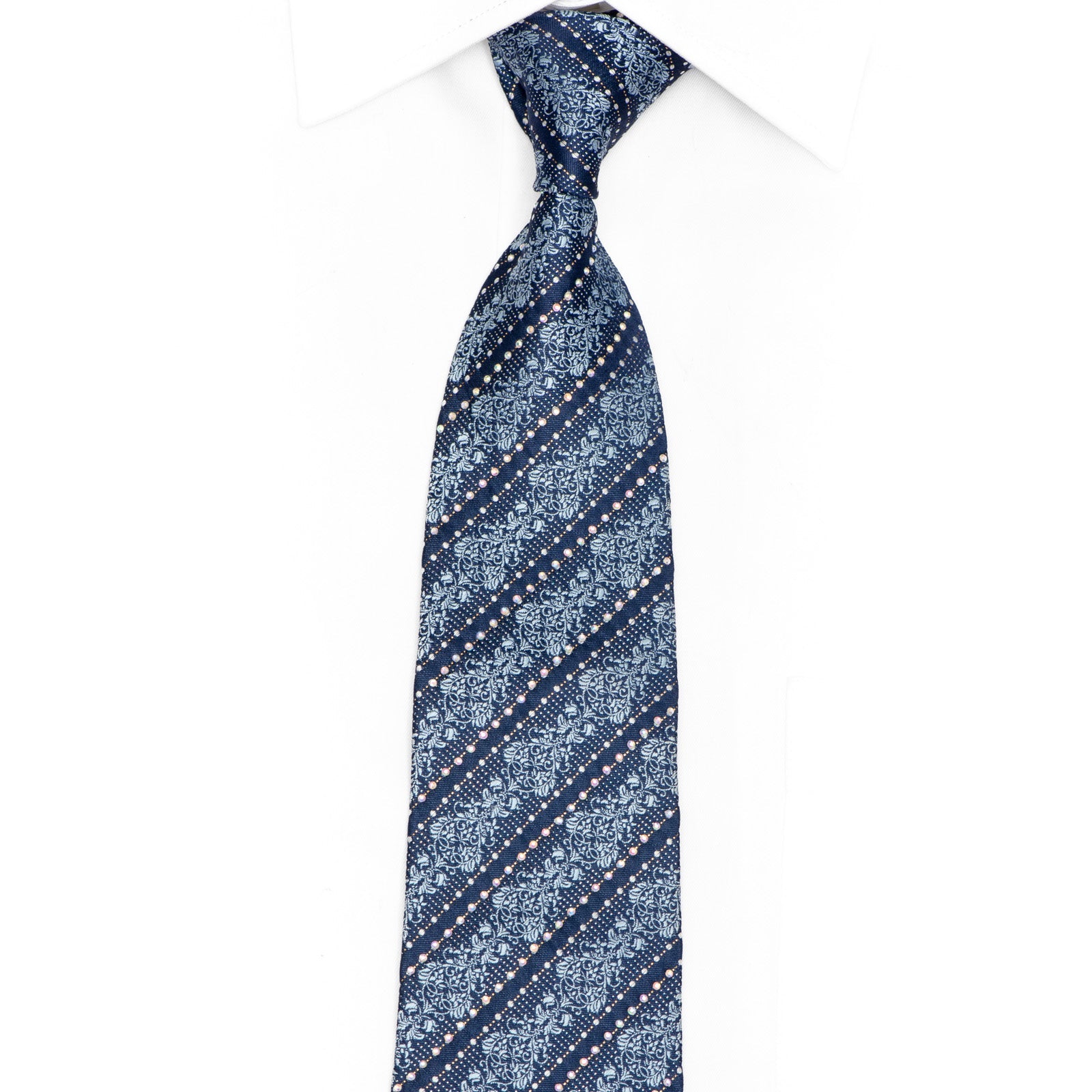 Material - SilkDesign - Cartouche StripesColor - BlueLength - Classic (48 in.-60 in.)(145cm-153 cm)Width - Classic (3 1/4 in.-3 3/4 in.)(8 cm-9.5 cm)Special Features - Rhinestones, Silver Sparkles