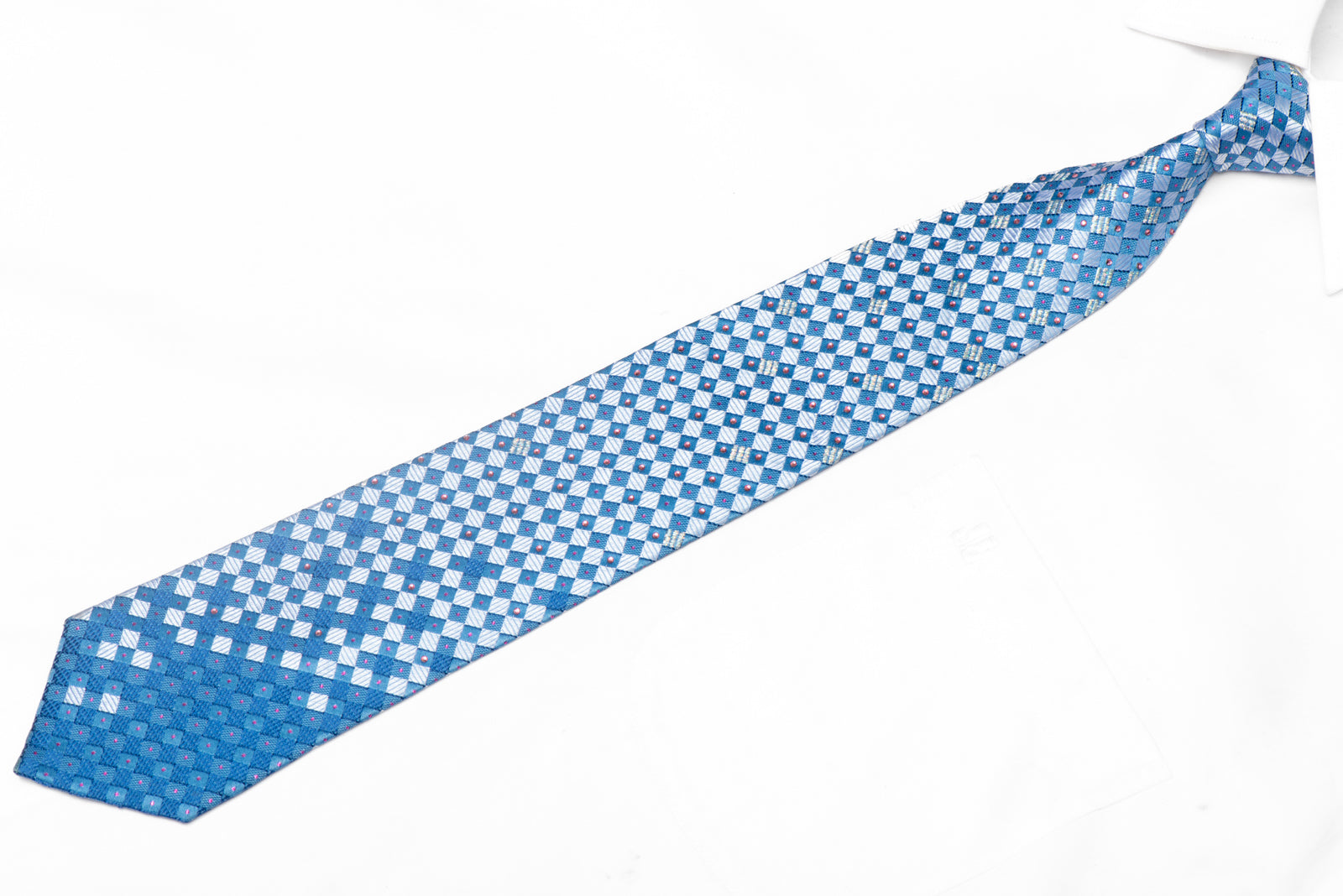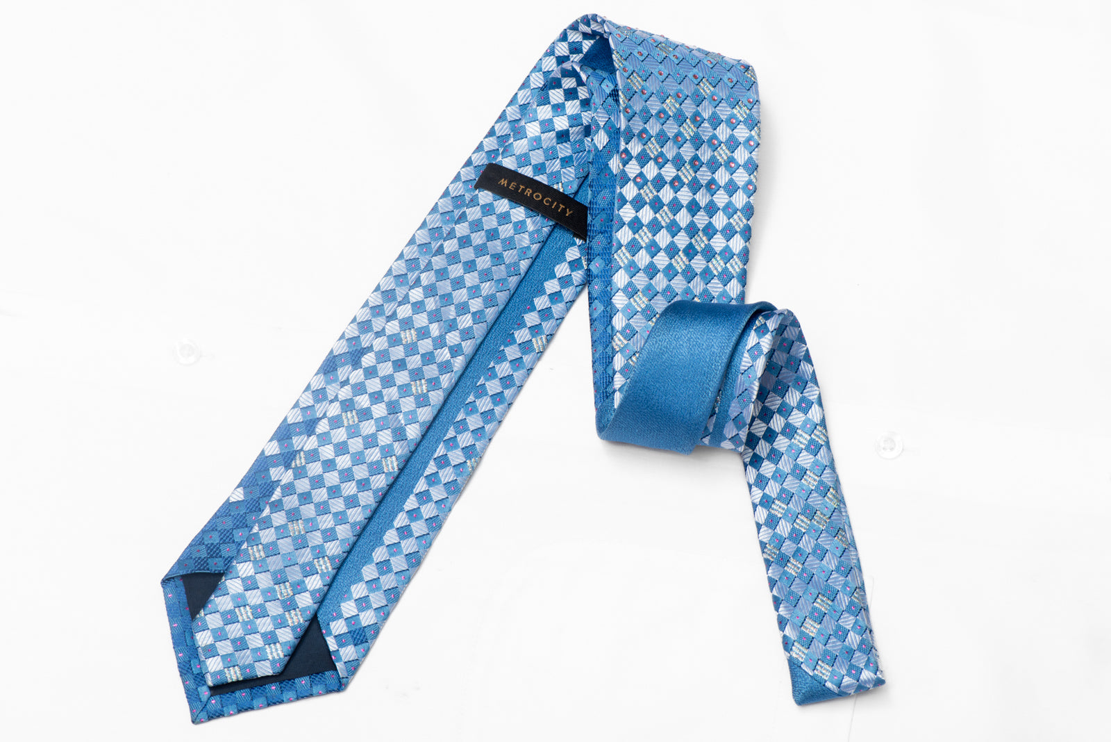 Blue Checkered Rhinestone Silk Tie With Purple Sparkles