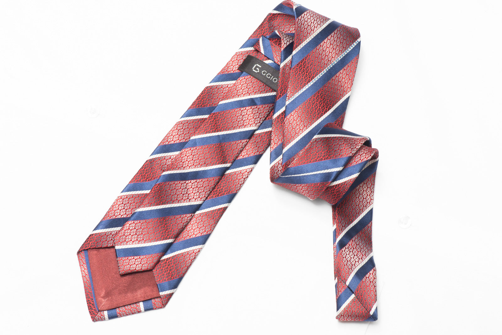 This tie features a stylish mix of blue, silver, and red stripes, accented with rhinestones for a touch of sparkle. Made of luxurious silk, it's perfect for adding a pop of color and personality to any outfit.