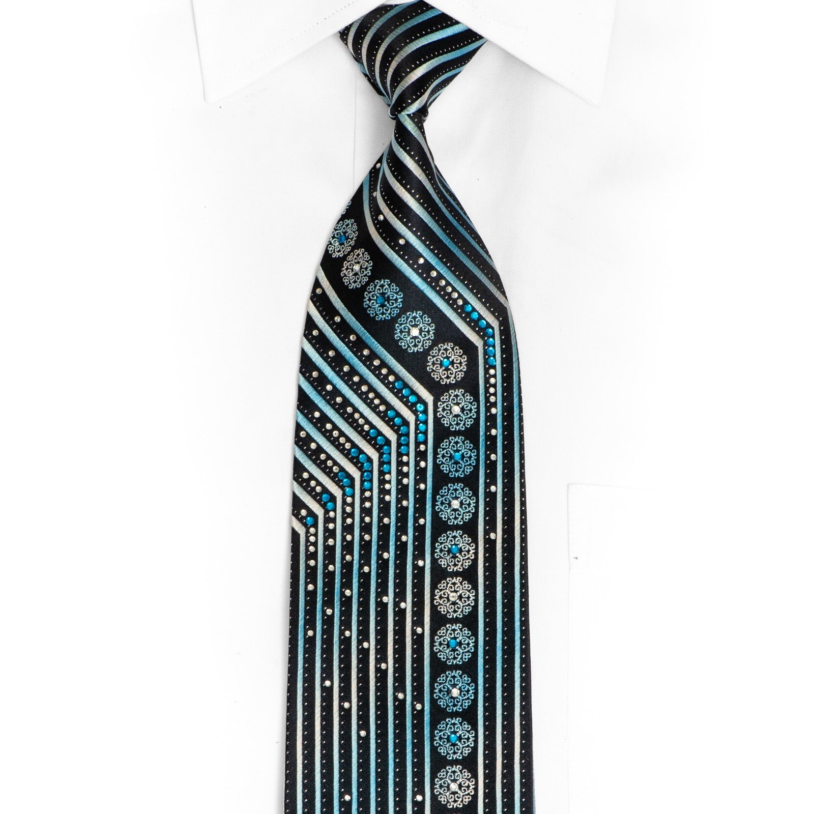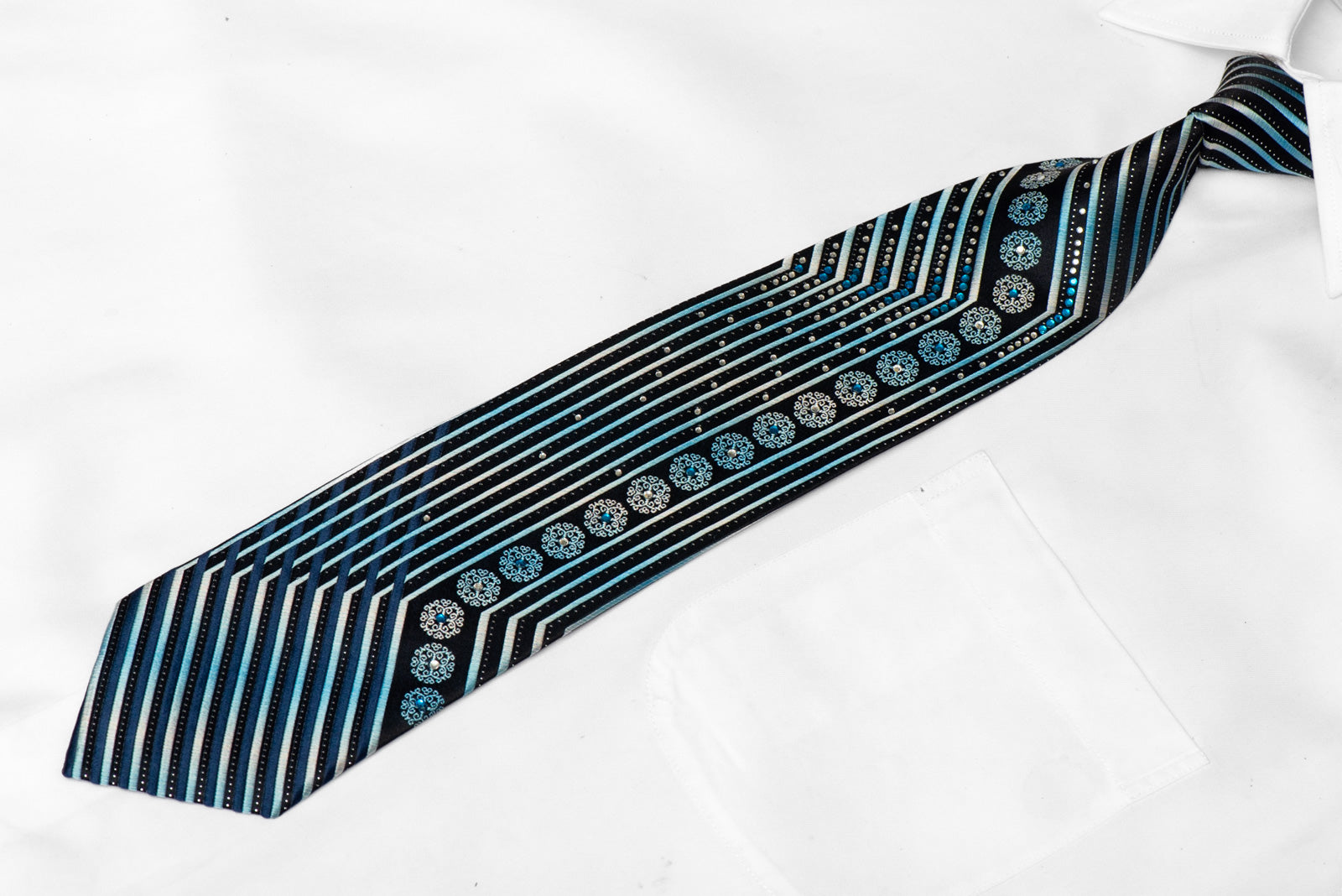 Material - SilkDesign - StripedColor - BlueLength - Classic (48 in.-60 in.)(145cm-153 cm)Width - Classic (3 1/4 in.-3 3/4 in.)(8 cm-9.5 cm)Special Features - Rhinestones, Silver Sparkles