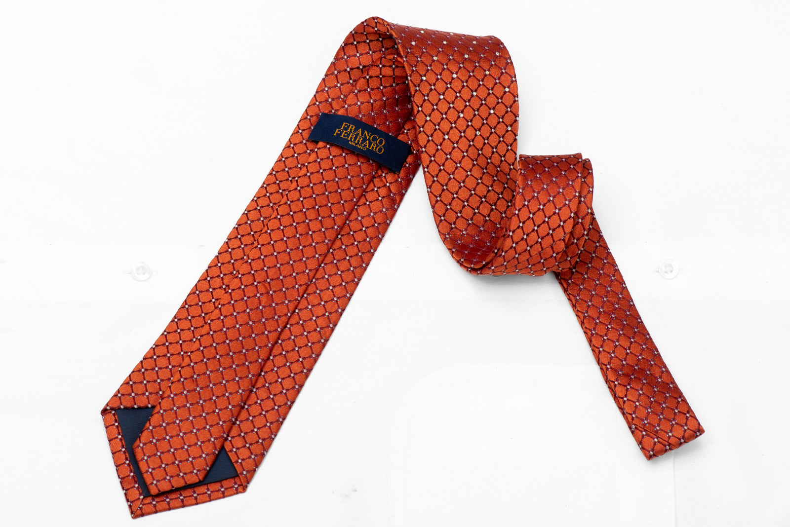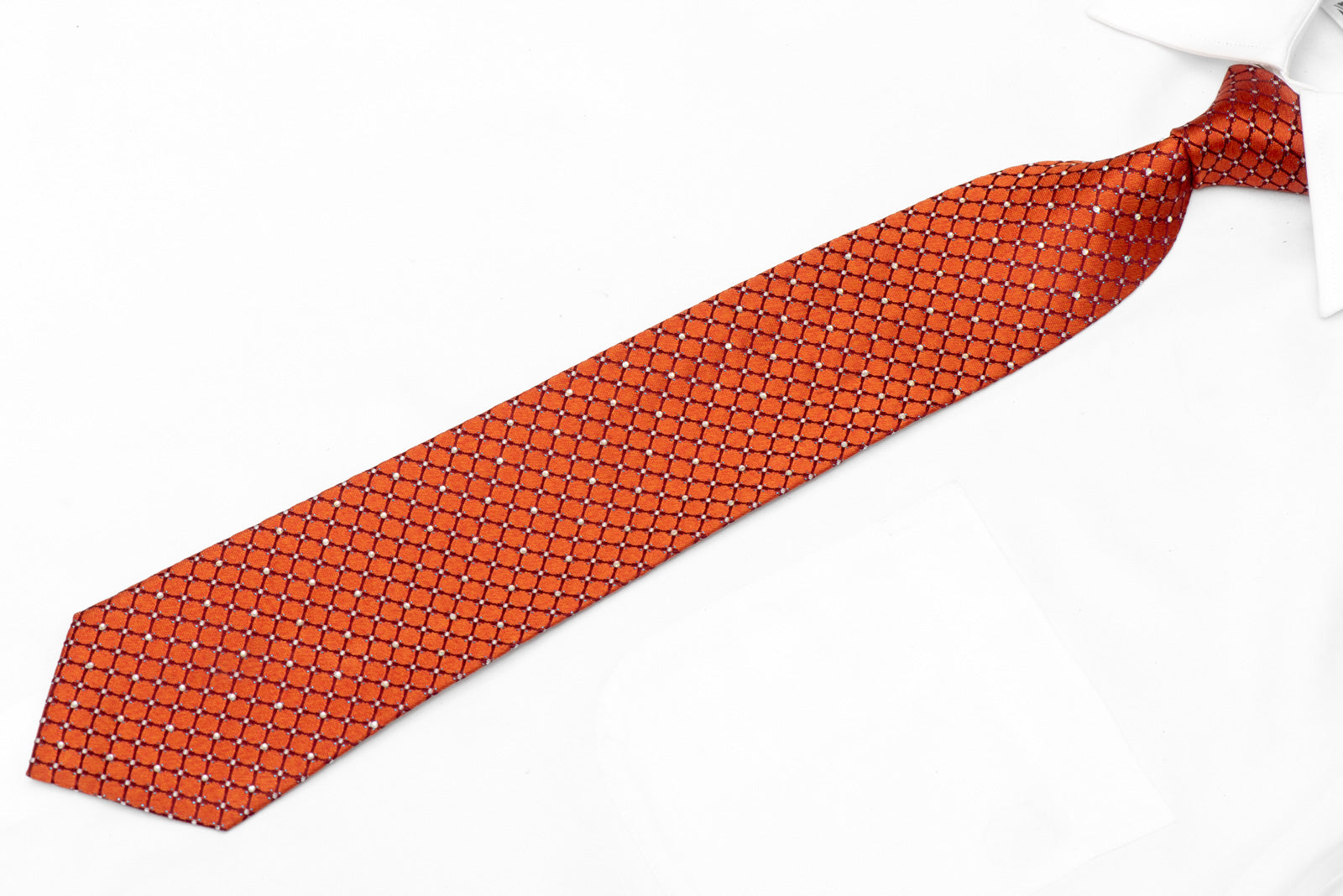Burgundy Trellis On Orange Rhinestone Silk Tie With Blue