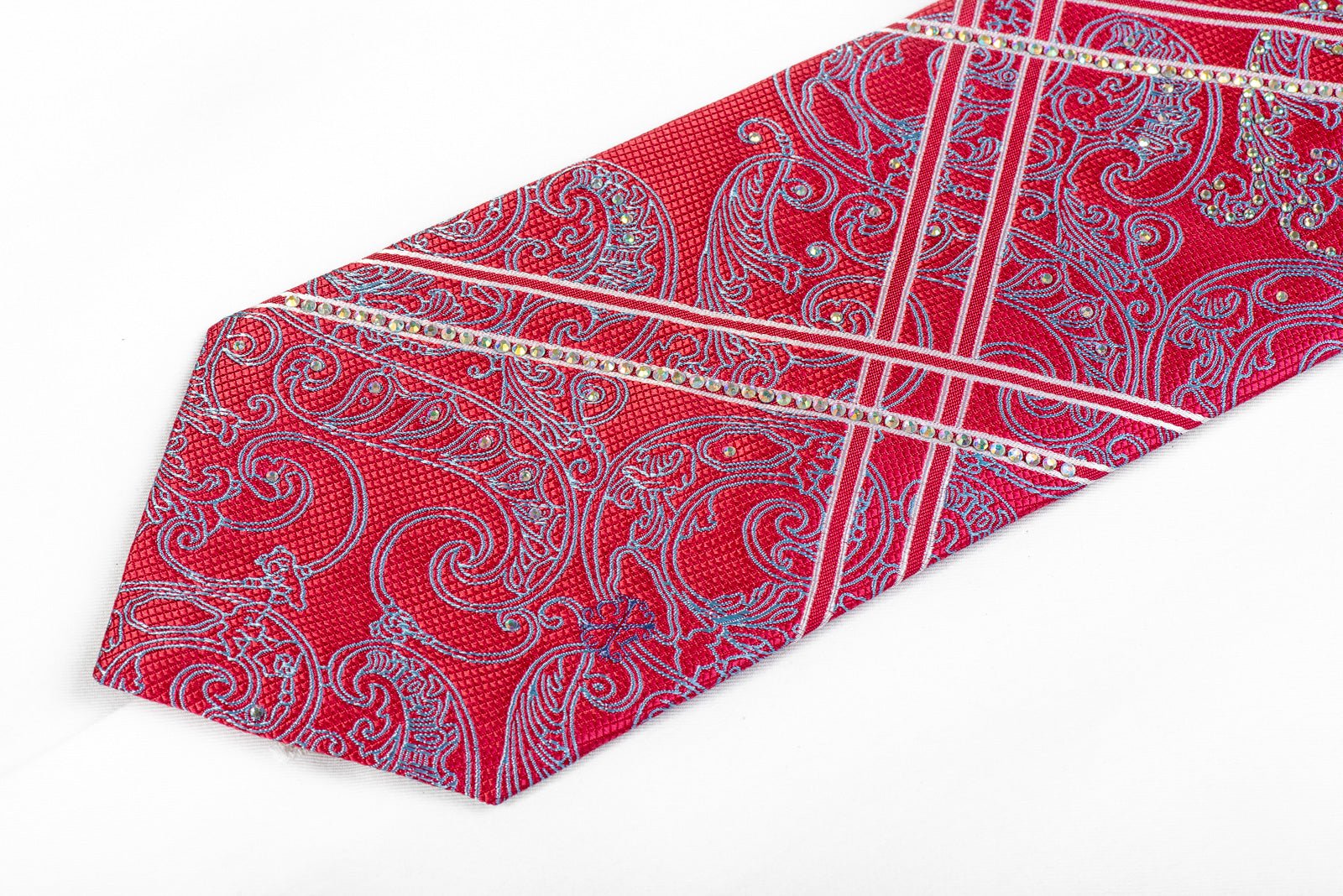 Stylish men's crystal Rhinestone necktie perfect for every occasion handmade from the finest quality silk and designed by top brand name Christian Lacroix. Presenting an elegant woven Striped and Paisley design on pink sparkling with crystal ab and rose rhinestones.