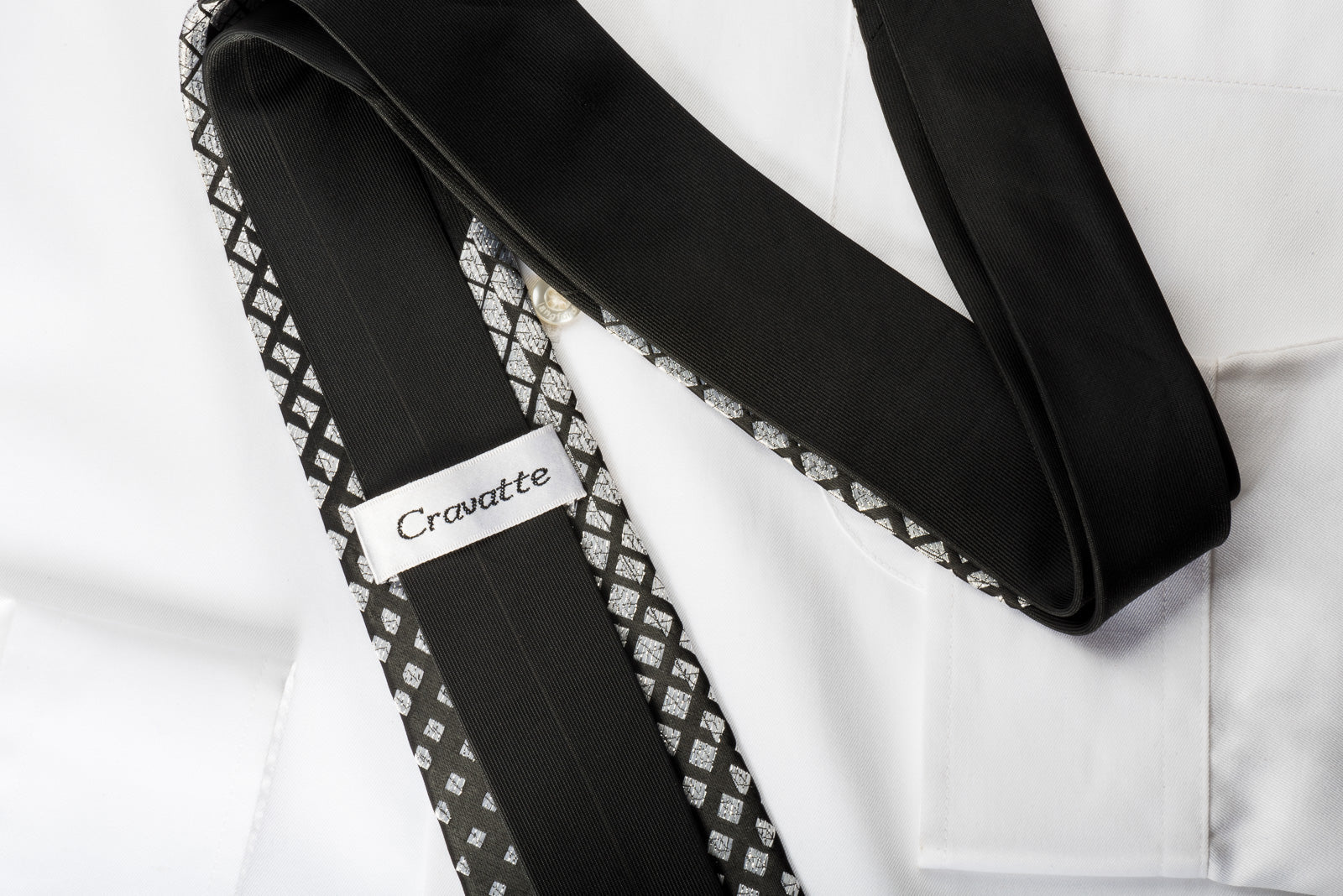 Cravatte Skinny Tie With Rhinestones Geometric Silver On Black Silk With Silver Sparkles