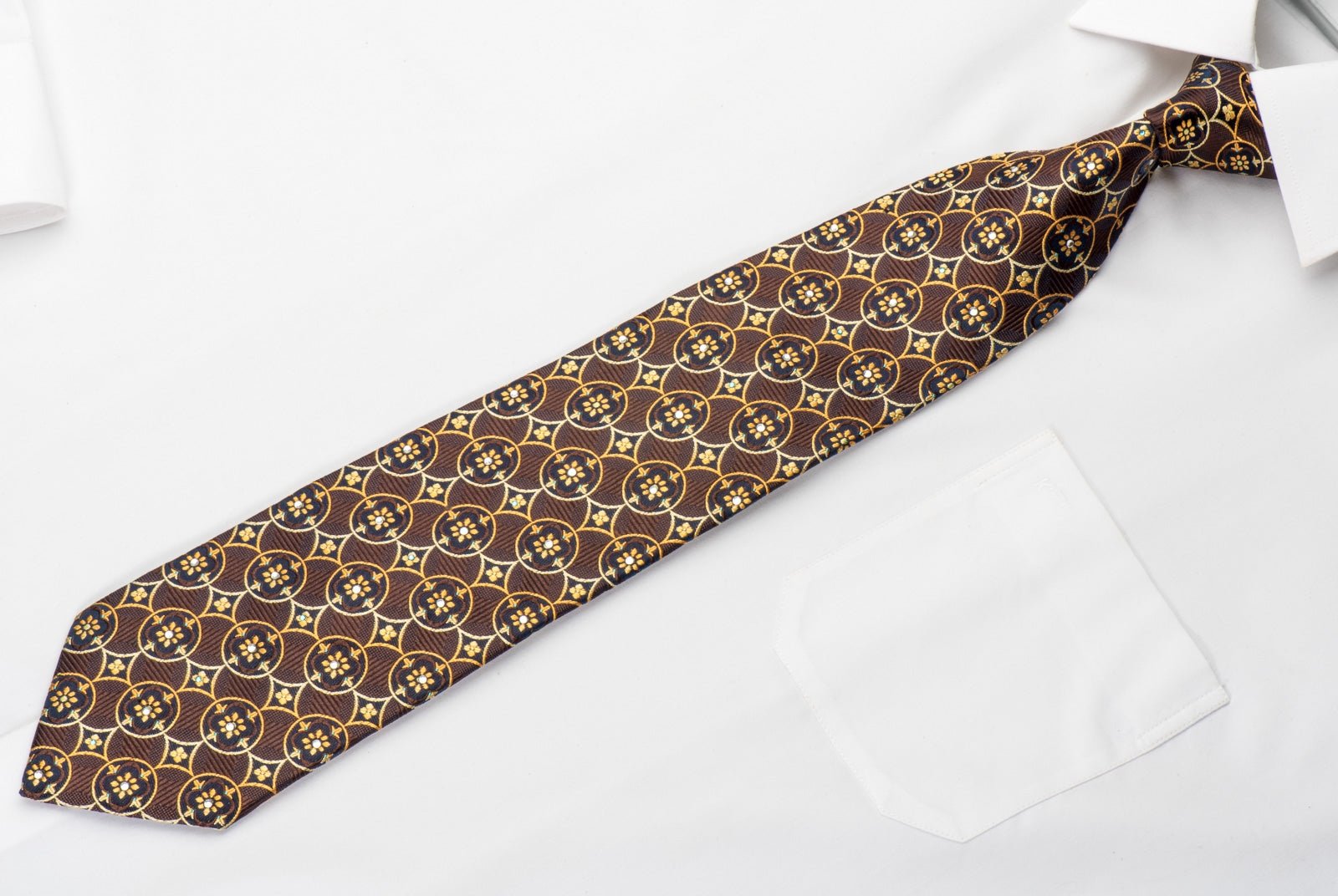 Elegance Mens Rhinestone Tie Orange Interlocking Circles On Brown Silk - San-Dee