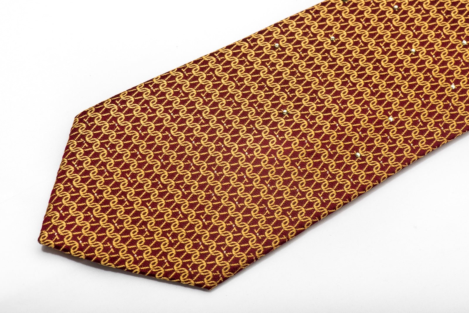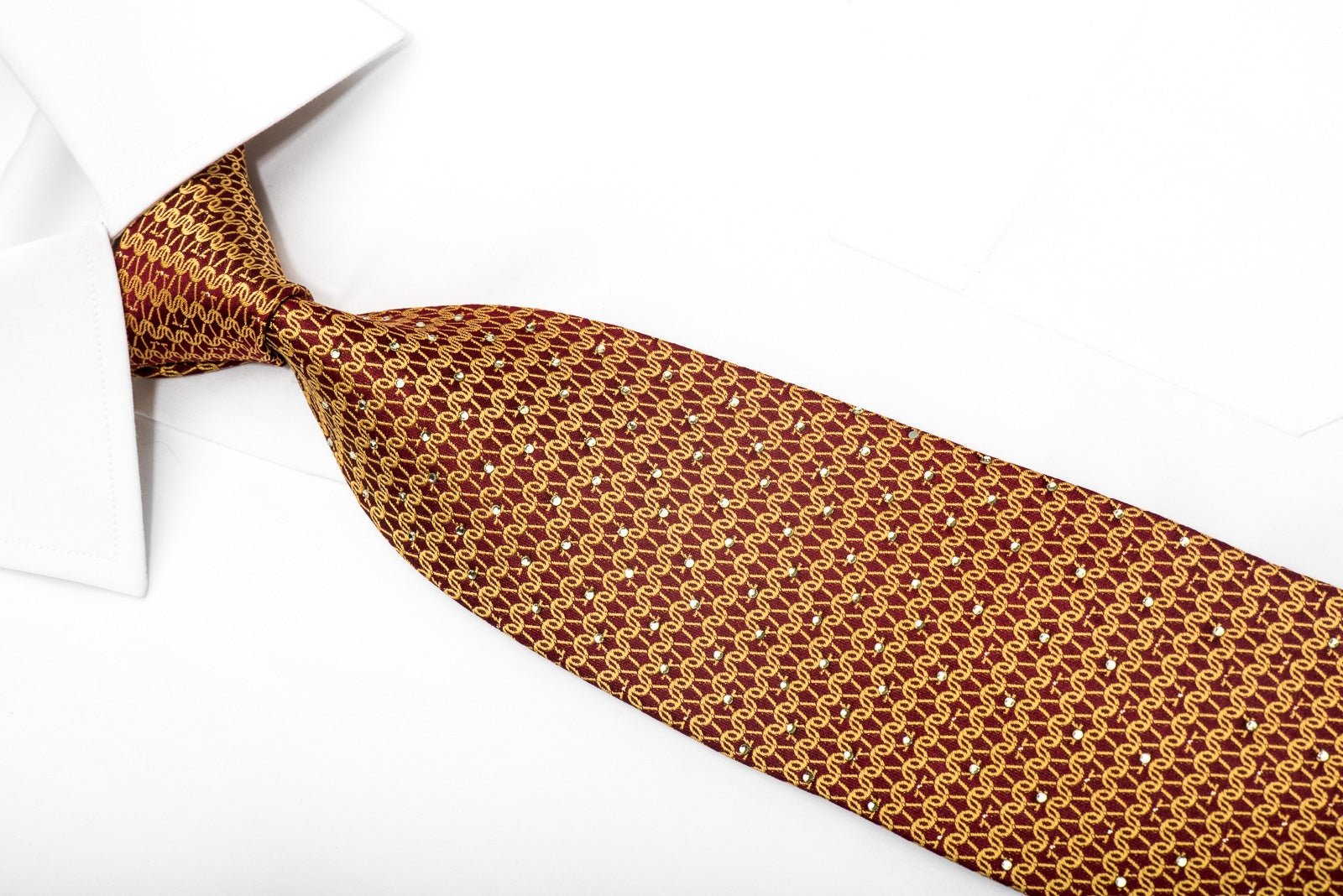 Elle Homme Men's Crystal Necktie Golden Chain Mail On Burgundy Silk With Rhinestones - San-Dee