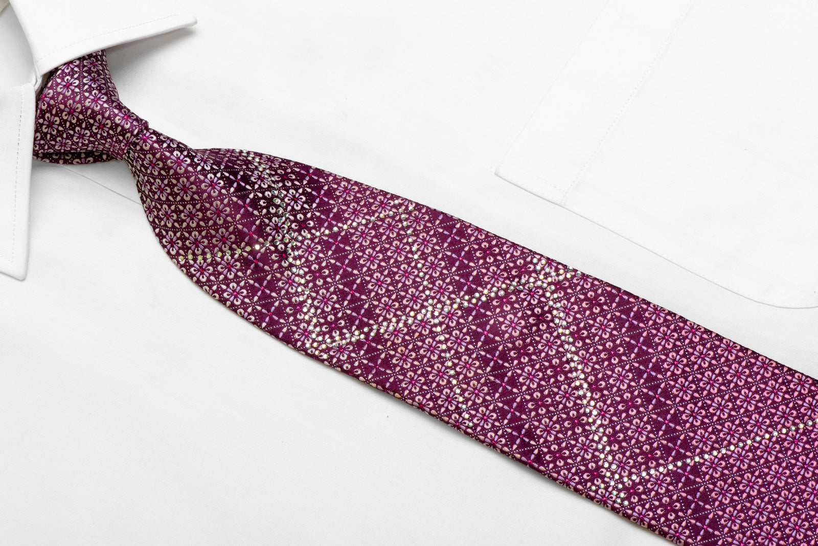 Material - SilkDesign - Floral TrellisColor - PurpleLength - Classic (57 in.-60 in.)(145 cm-153 cm)Width - Classic (3 1/4 in.-3 3/4 in.)(8 cm-9.5 cm)Special Features - Rhinestones, Silver Sparkles