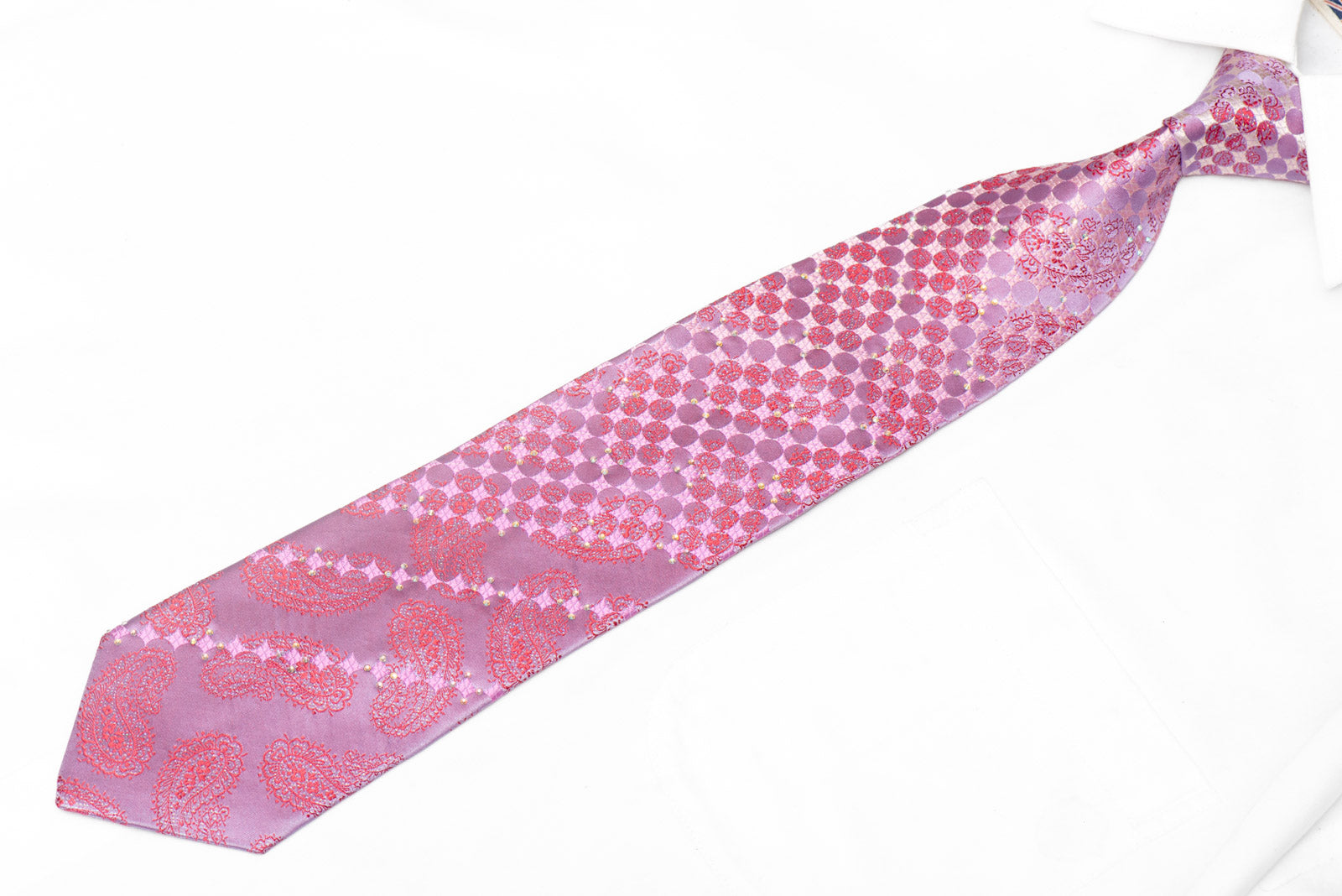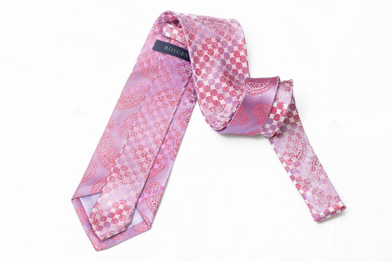 Transform your look with this Geometric & Paisley Mauve Silk Tie, adorned with Rhinestones and Sparkles. Elevate your style with ease.