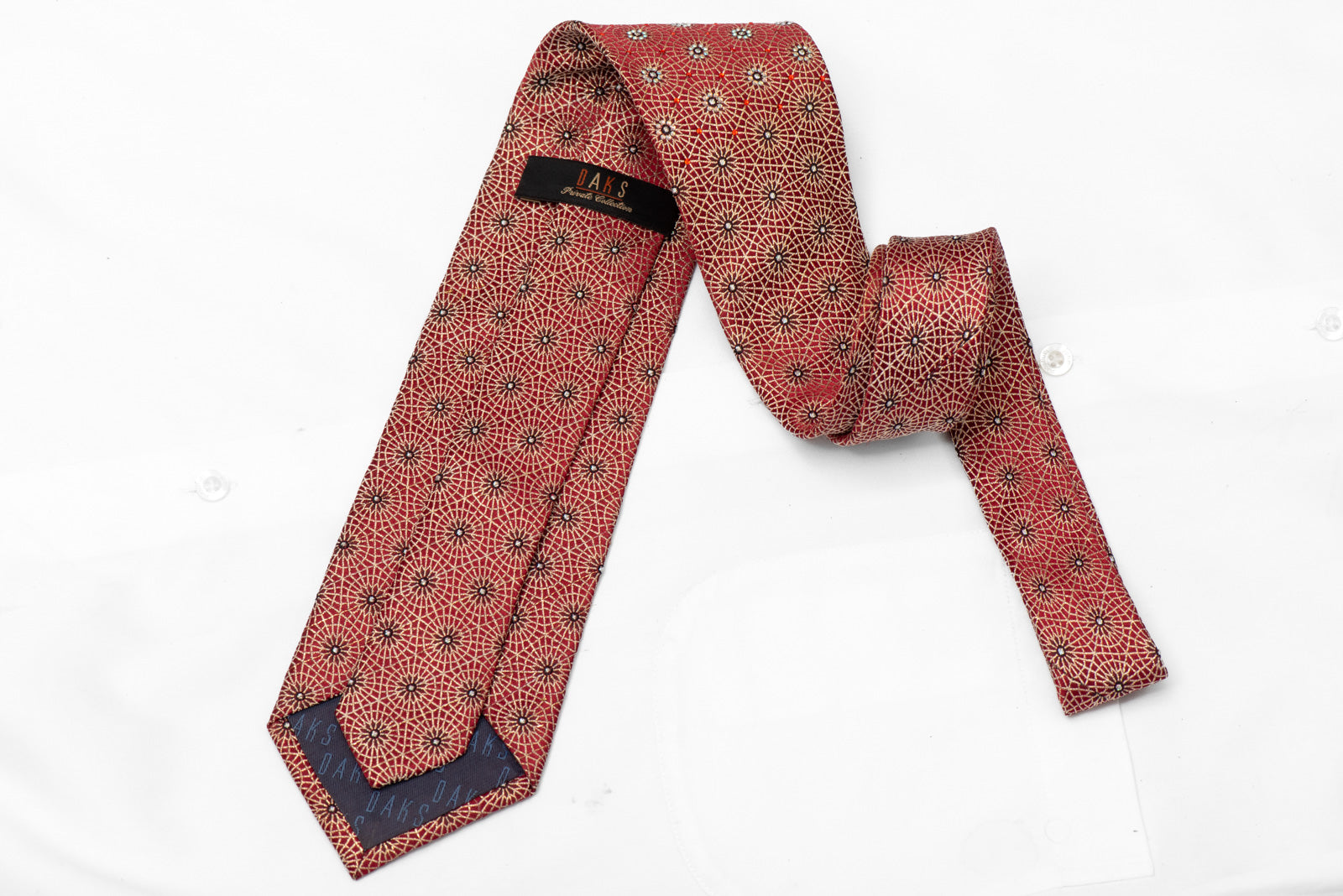 Gold Trellis On Dark Red Rhinestone Sparkle Silk Tie