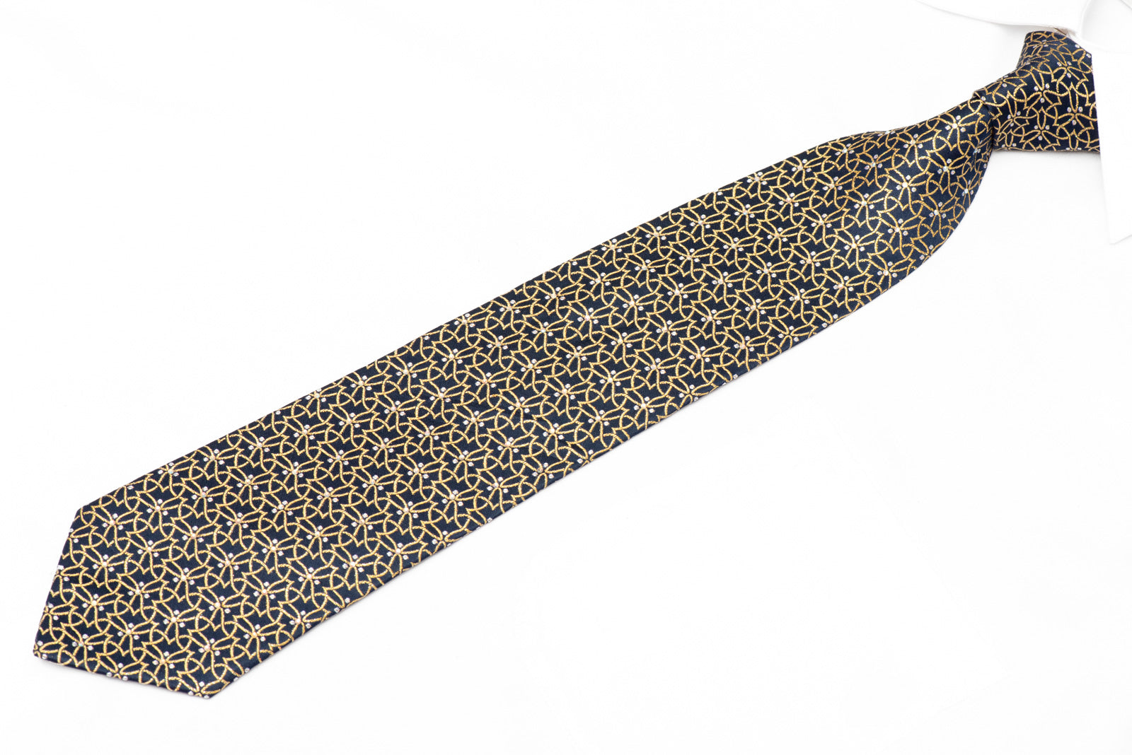 Gold Trellis On Navy Rhinestone Silk Tie With Gold Sparkles
