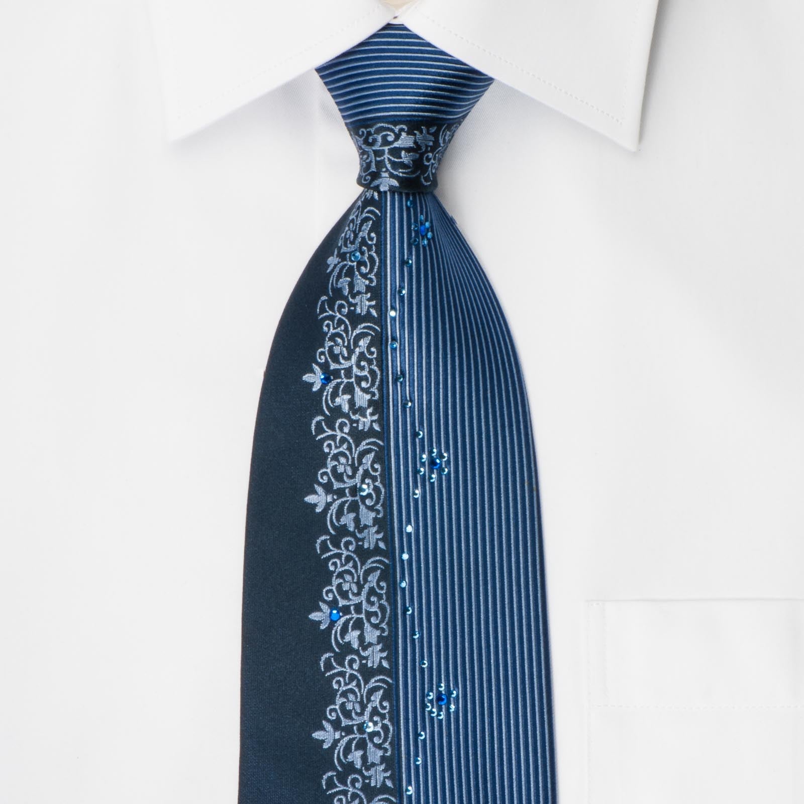 Material - SilkDesign - StripedColor - BlueLength - Classic (57 in.-60 in.)(145 cm-153 cm)Width - Classic (3 1/4 in.-3 3/4 in.)(8 cm-9.5 cm)Special Features - Blue Rhinestones