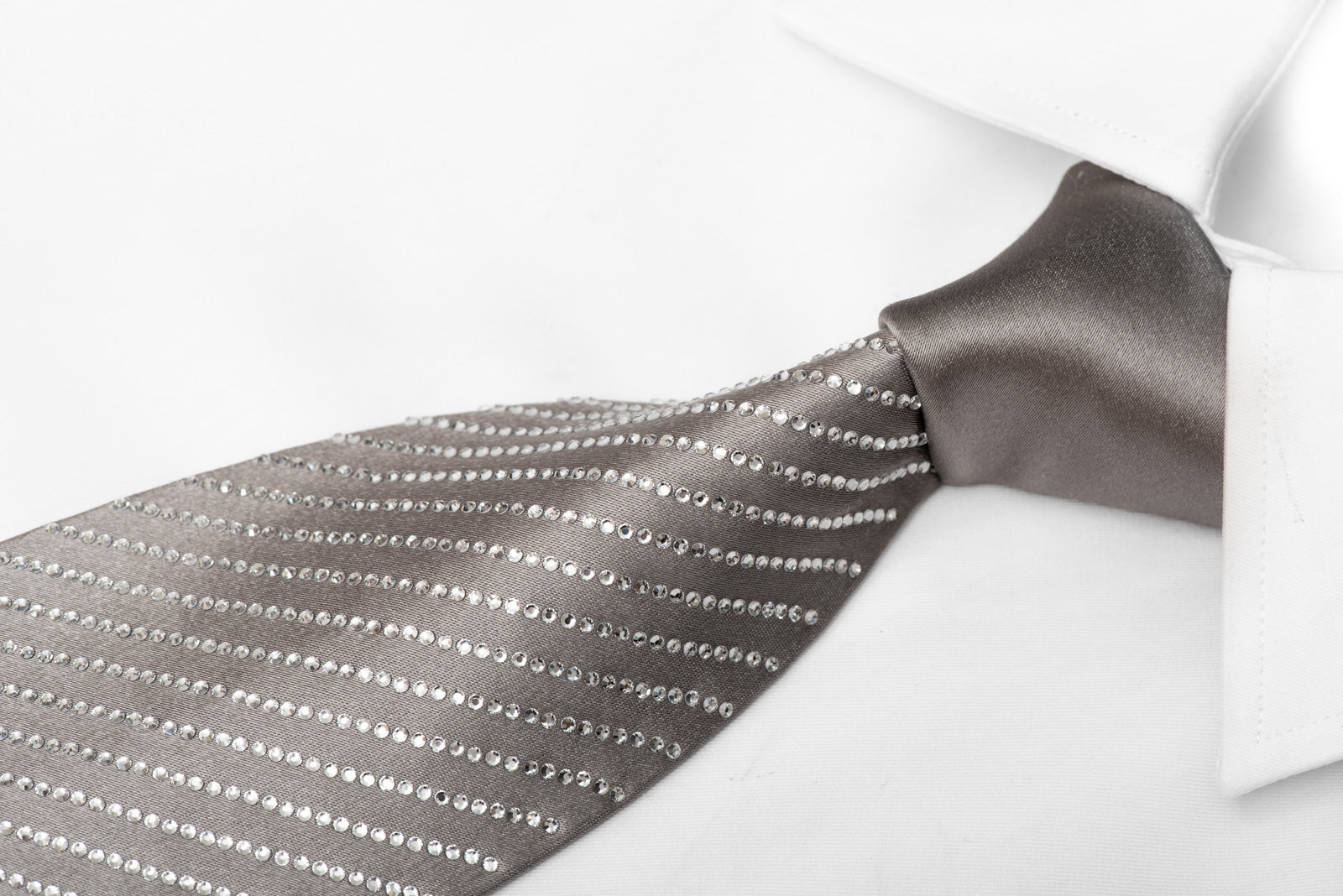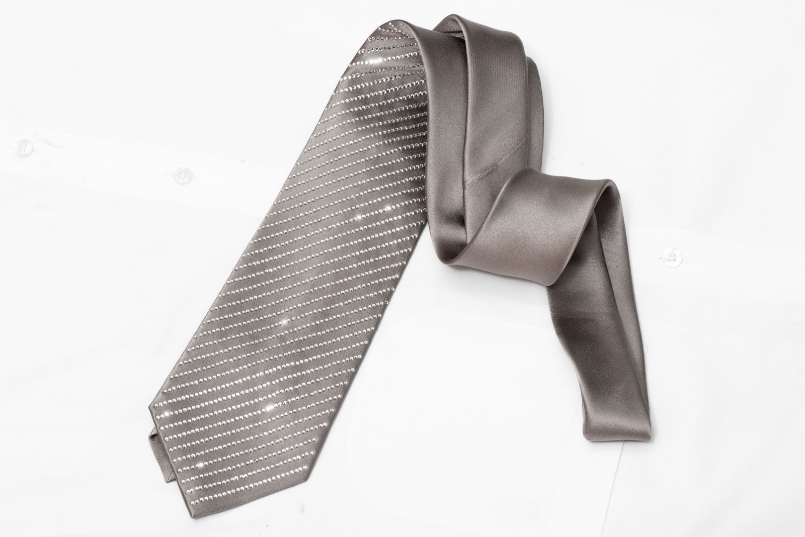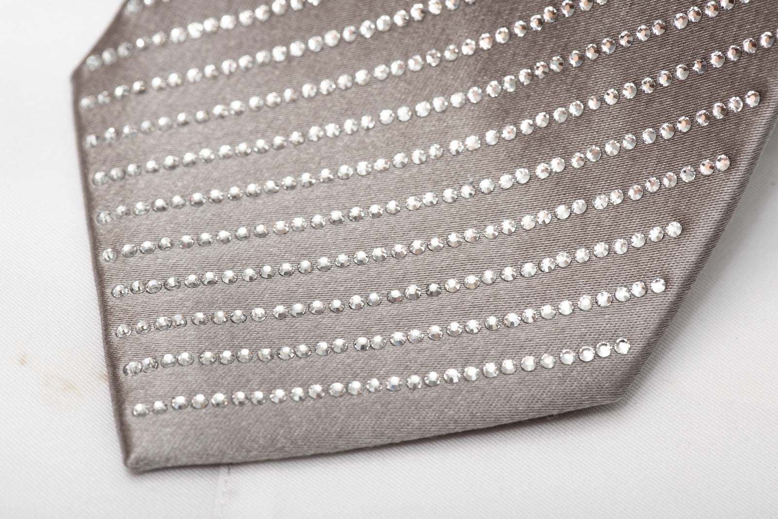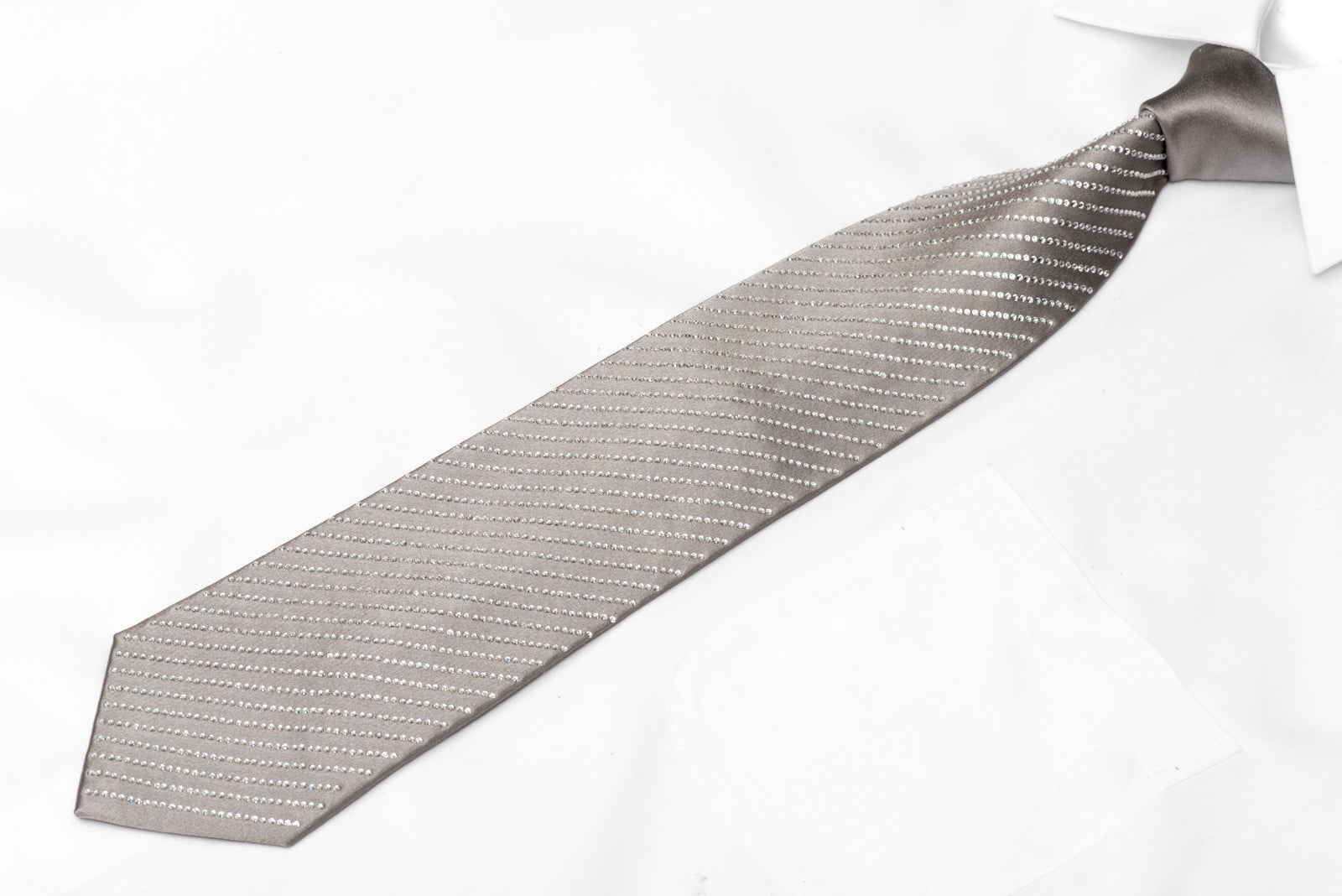 Lalanta Silver Silk Rhinestone Necktie – Satin Weave
