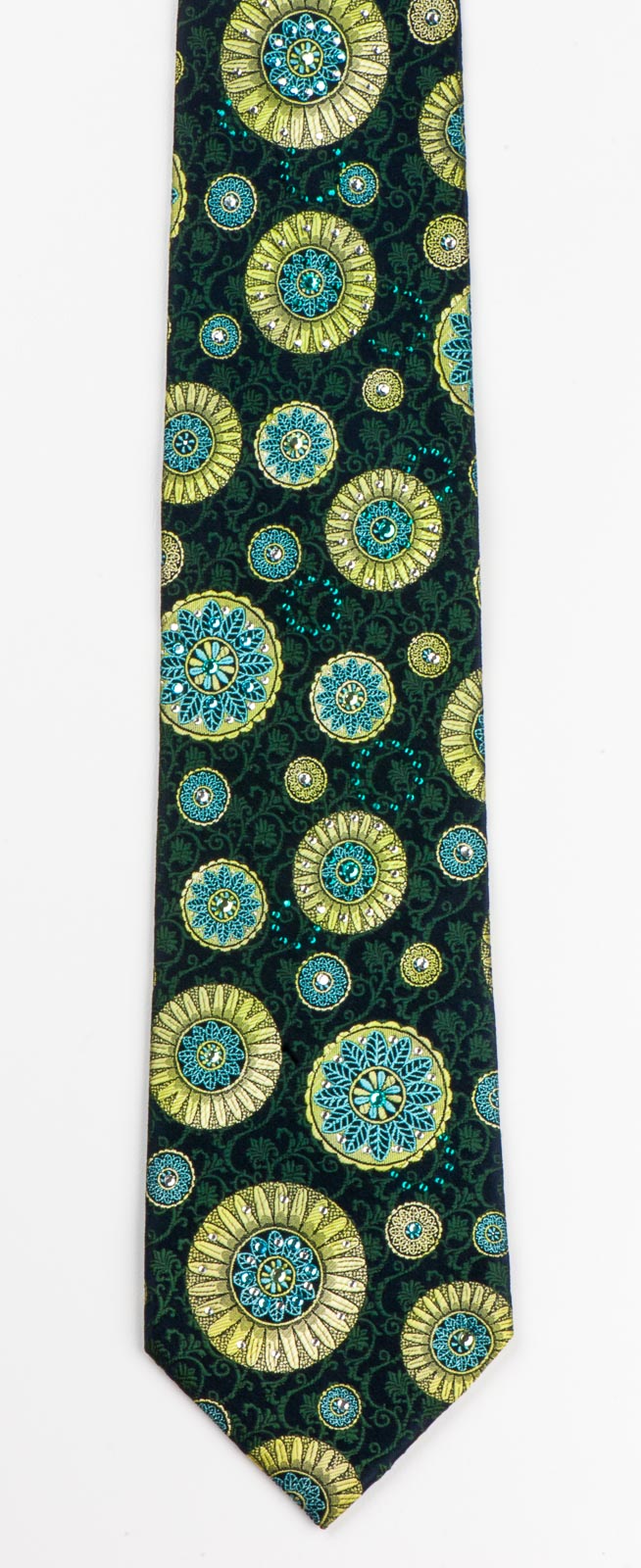 Material - SilkDesign - MedallionsColor - Black, Green, Lime GreenLength - Classic (57 in.-60 in.)(145 cm-153 cm)Width - Classic (3 1/4 in.-3 3/4 in.)(8 cm-9.5 cm)Special Features - Blue Rhinestones, White Rhinestones