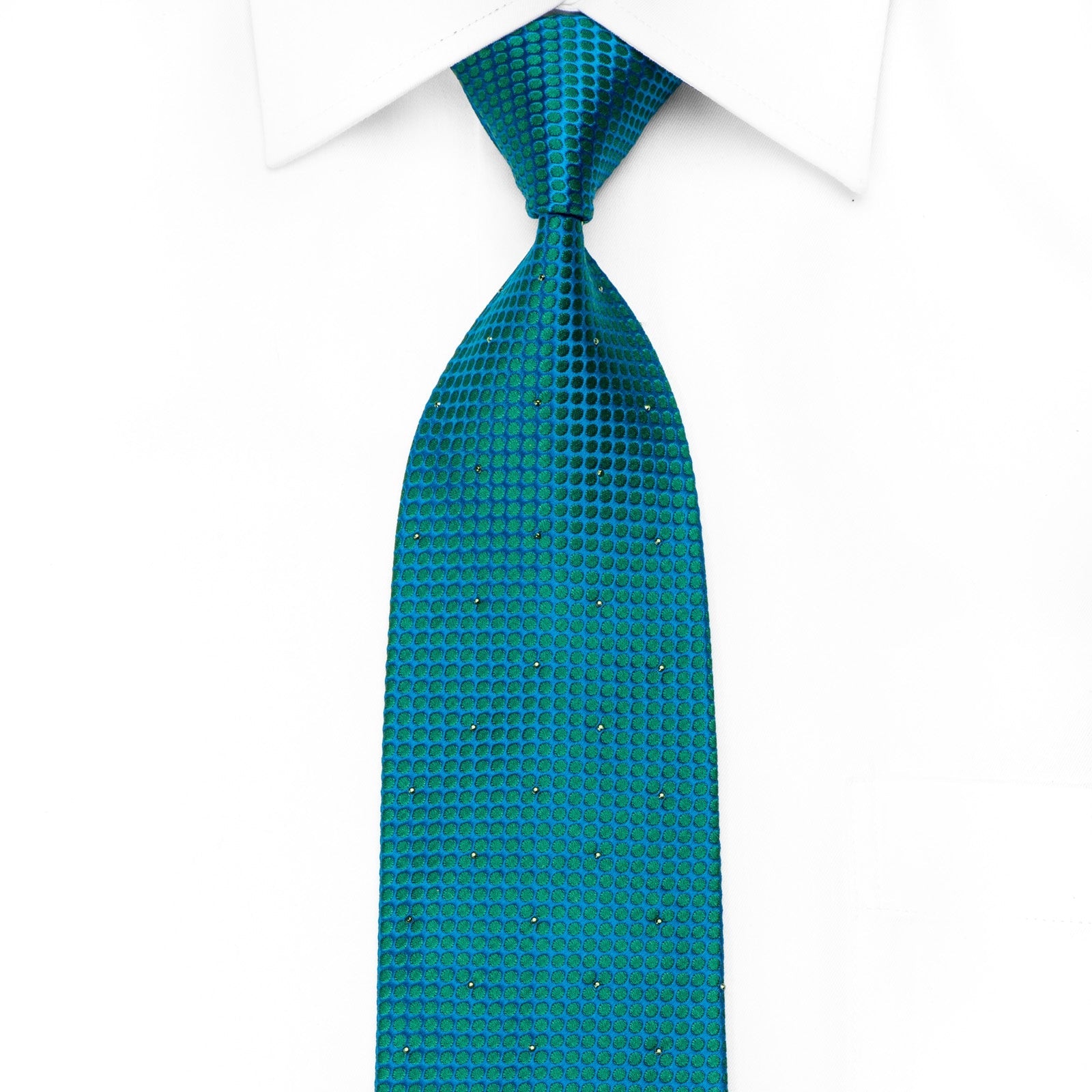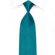 Stylish men's crystal silk tie perfect for every occasion handmade and designed by top brand name Mila Schon. Presenting an elegant woven green, turquoise Geometric design sparkling with turquoise Rhinestuds