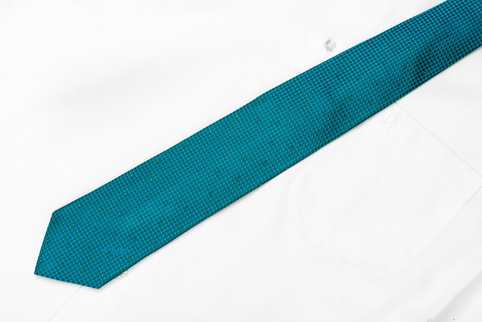 Material - SilkDesign - GeometricColor - Green, TurquoiseLength - Classic (57 in.-60 in.)(145 cm-153 cm)Width - Classic (3 1/4 in.-3 3/4 in.)(8 cm-9.5 cm)Special Features - Green Rhinestones
