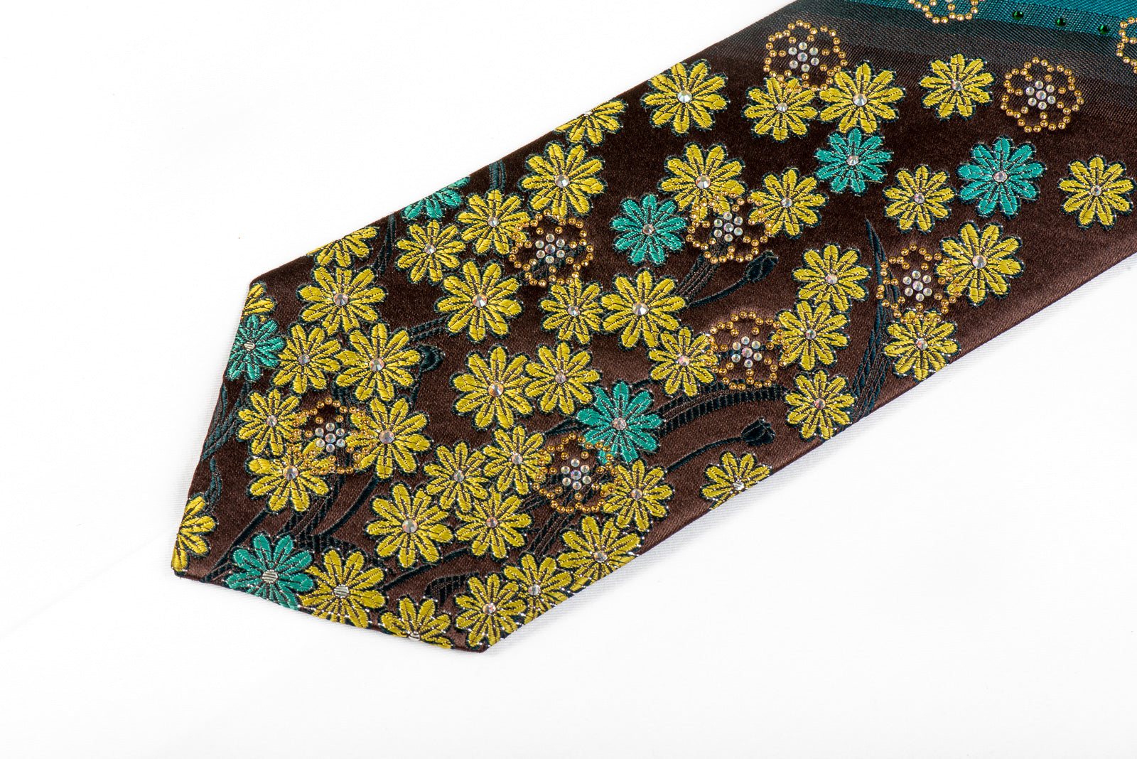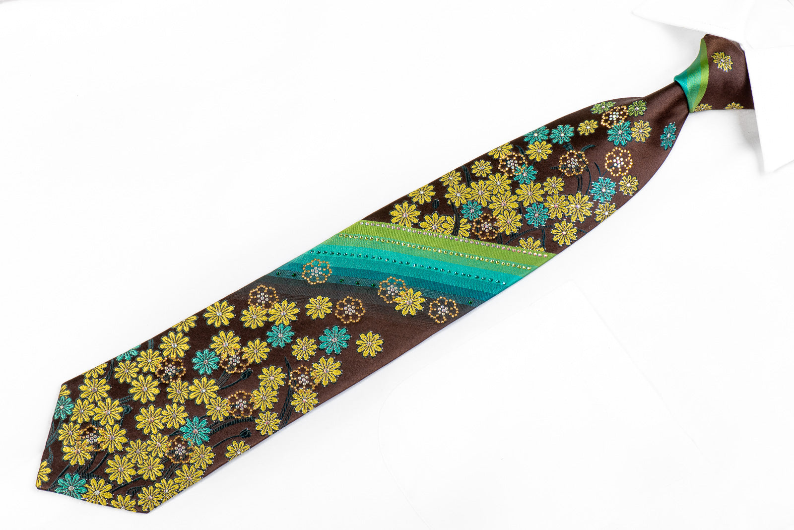 Material - SilkDesign - FloralColor - Brown, Green, TurquoiseLength - Classic (57 in.-60 in.)(145 cm-153 cm)Width - Classic (3 1/4 in.-3 3/4 in.)(8 cm-9.5 cm)Special Features - AB Rhinestones, Gold Studs, Green Rhinestones, Silver Sparkles, Turquoise Rhinestones