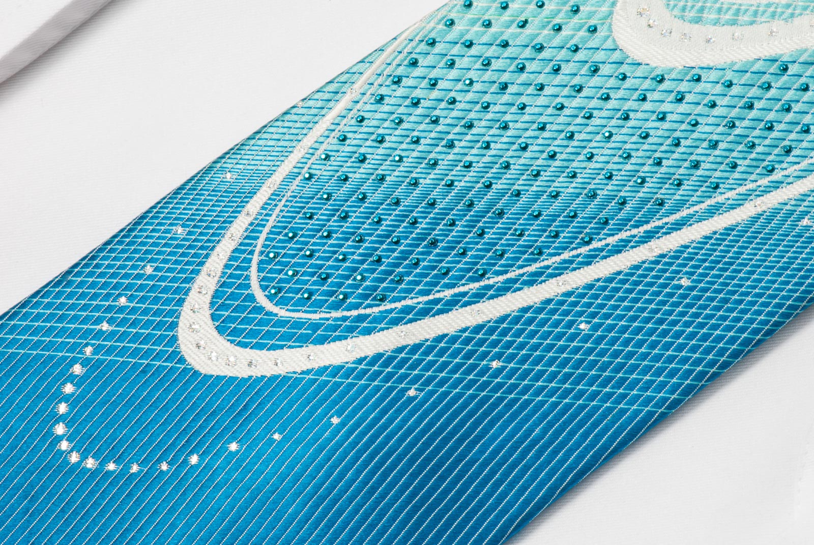 Material - SilkDesign - GeometricColor - Blue, Green, WhiteLength - Classic (57 in.-60 in.)(145 cm-153 cm)Width - Classic (3 1/4 in.-3 3/4 in.)(8 cm-9.5 cm)Special Features - Blue Rhinestones, Blue Sparkles, Blue Studs, Green Rhinestones