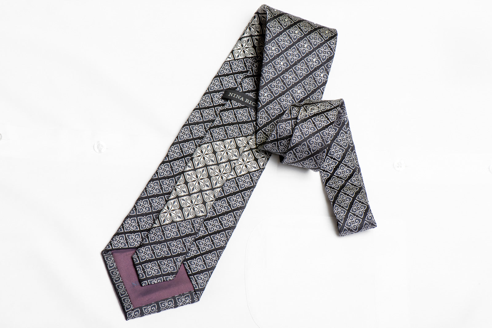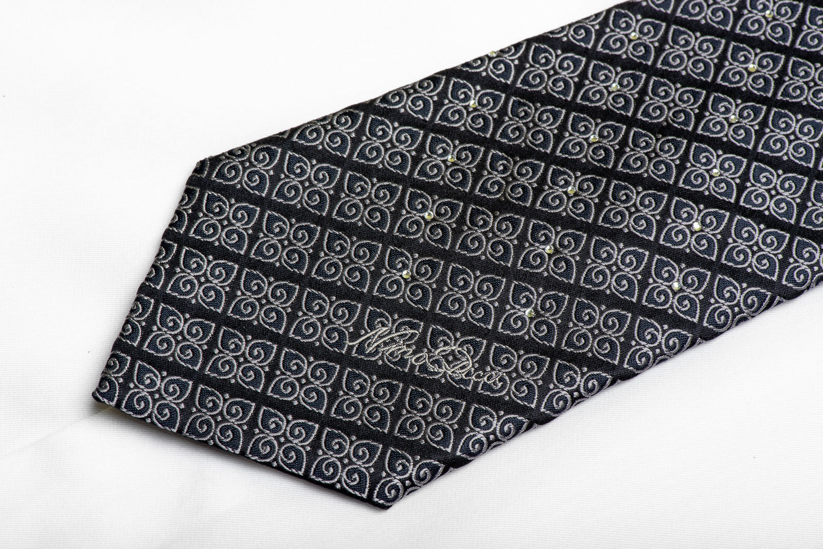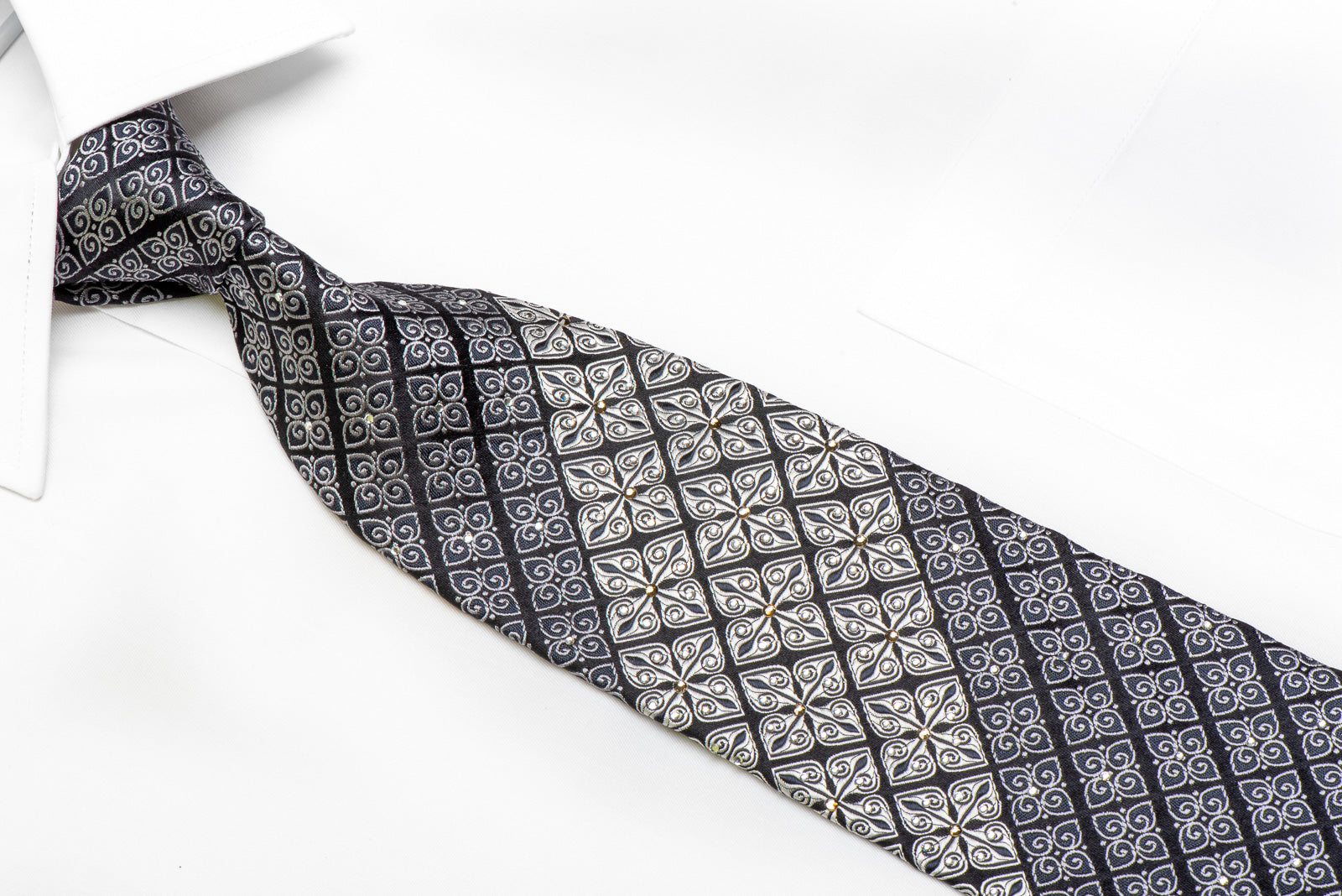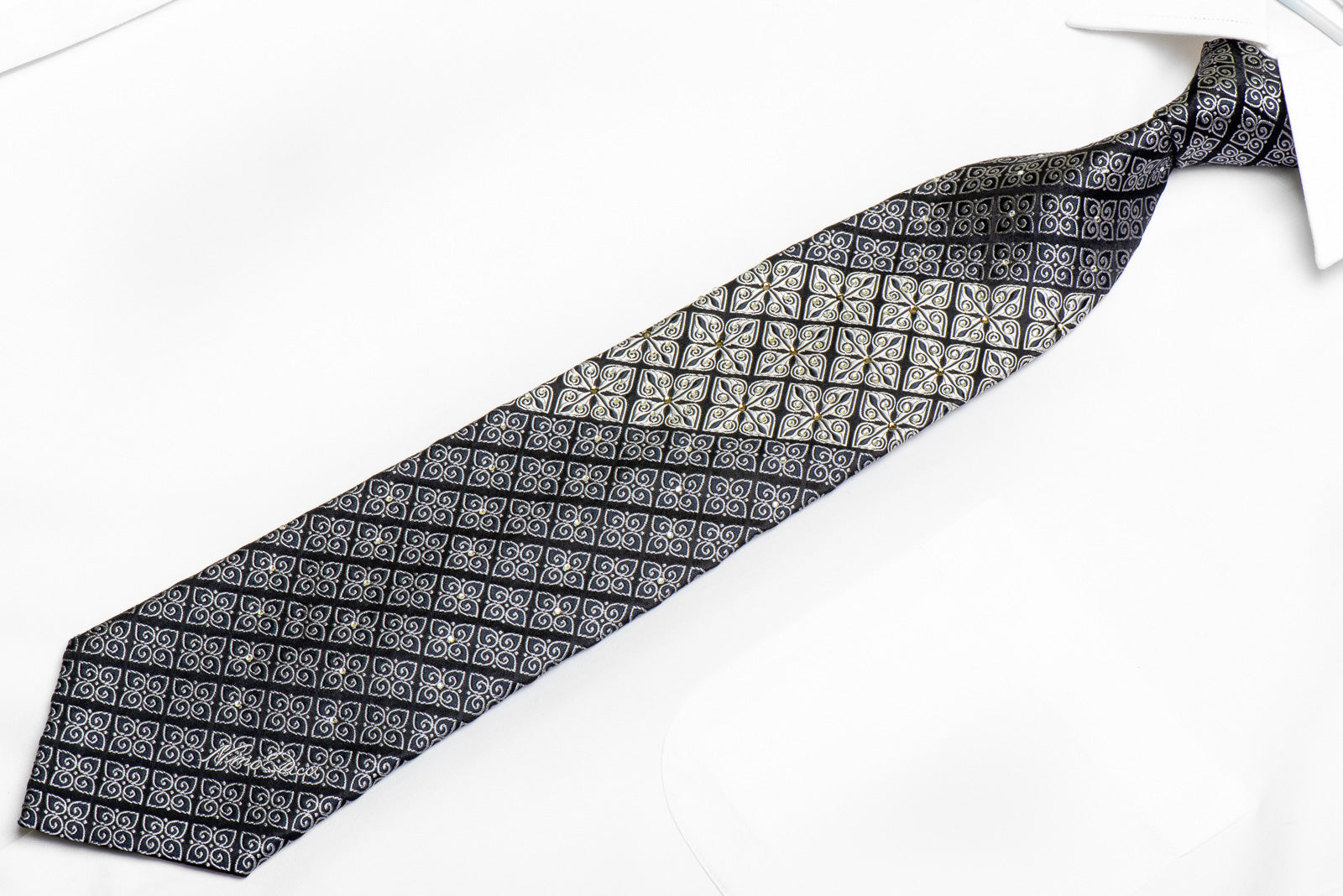 Material - SilkDesign - CartoucheColor - Black, SilverLength - Classic (57 in.-60 in.)(145 cm-153 cm)Width - Classic (3 1/4 in.-3 3/4 in.)(8 cm-9.5 cm)Special Features - Crystal Rhinestones