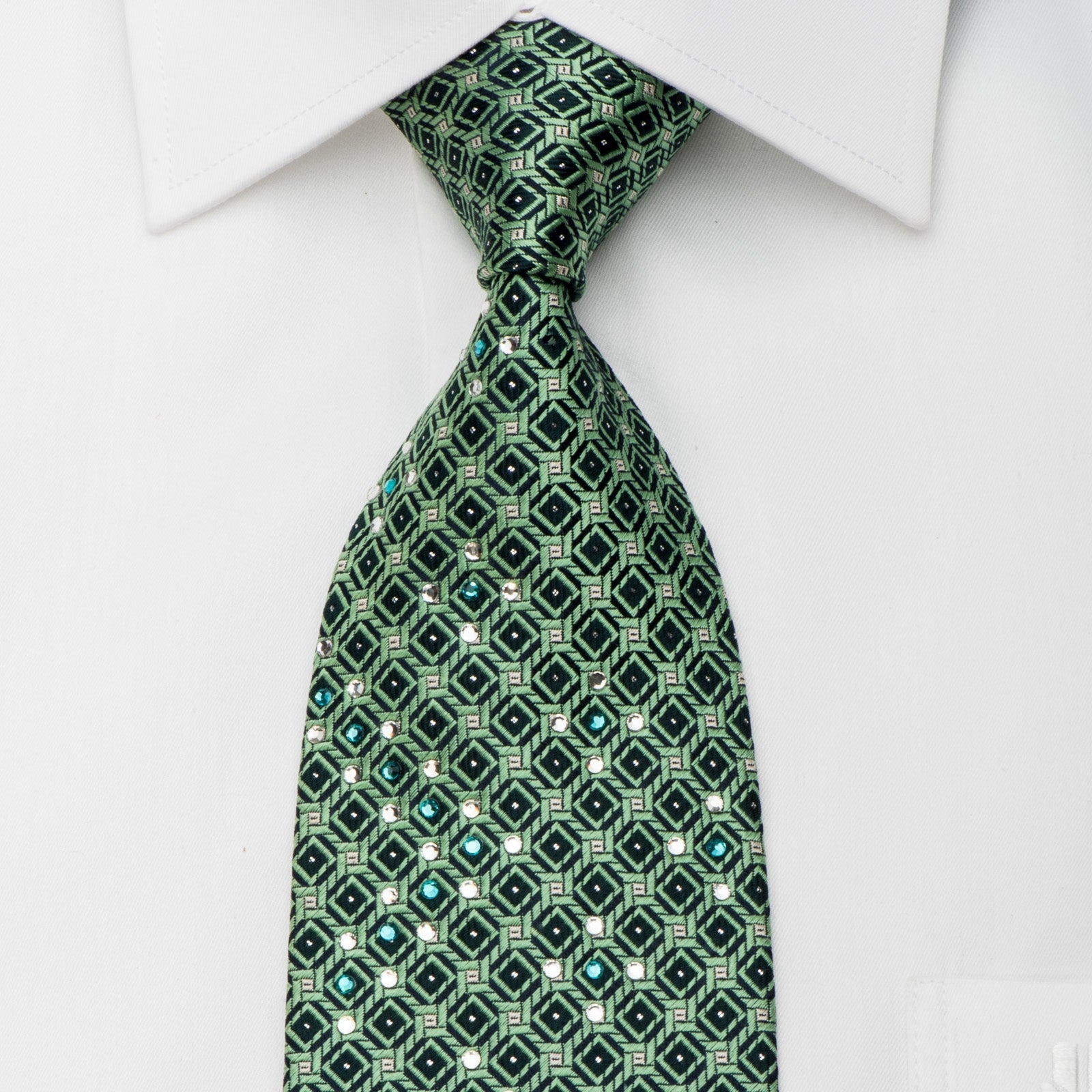 Material - SilkDesign - TrellisColor - Blue, GreenLength - Classic (57 in.-60 in.)(145 cm-153 cm)Width - Classic (3 1/4 in.-3 3/4 in.)(8 cm-9.5 cm)Special Features - Green Rhinestones, Silver Sparkles, White RhinestonesBrand -