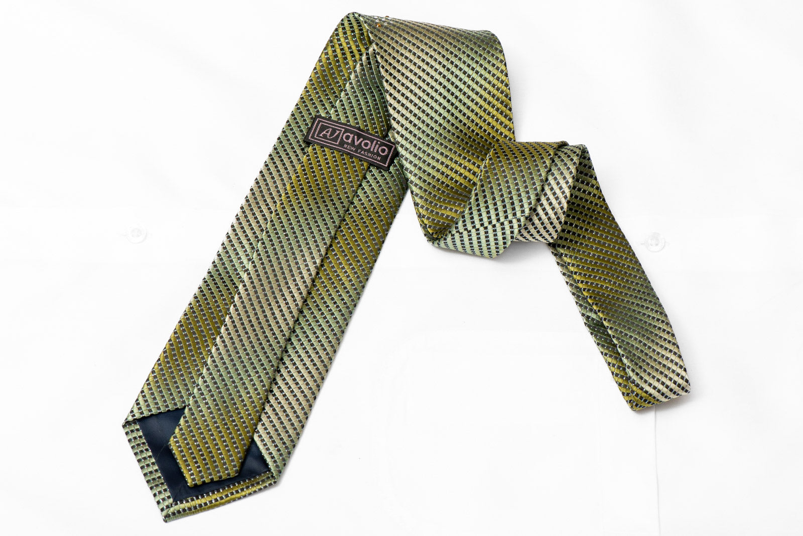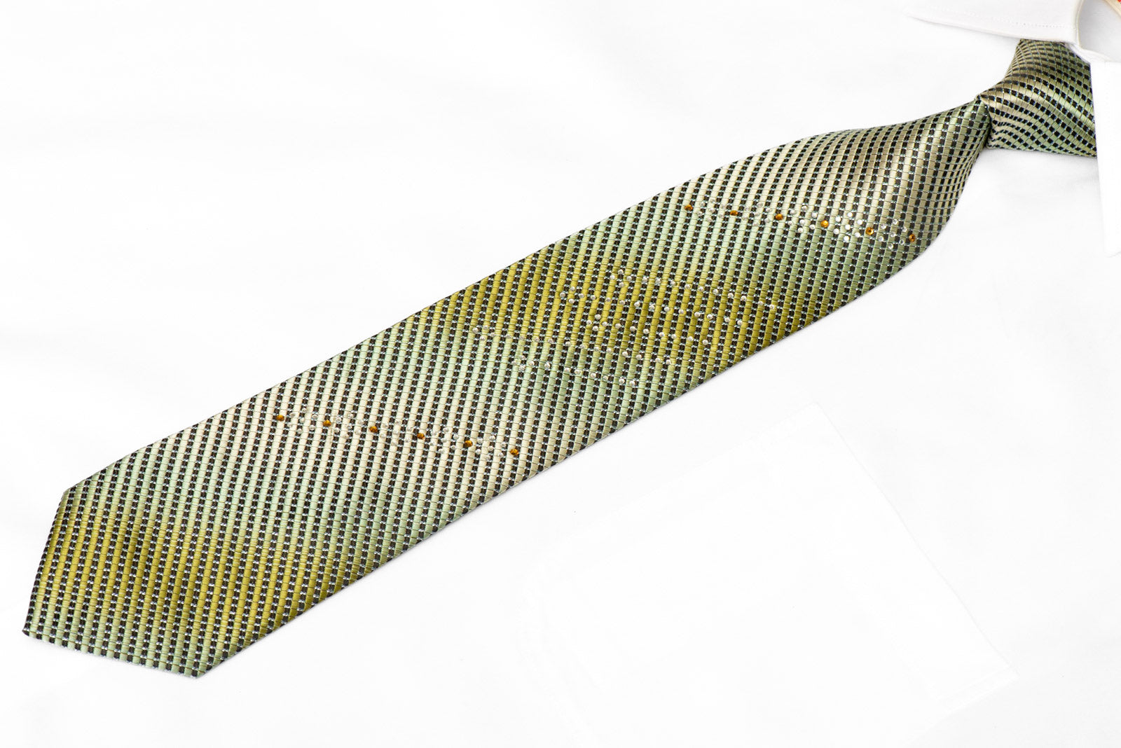 Olive Green Black Striped Rhinestone Silk Tie With Silver Sparkles