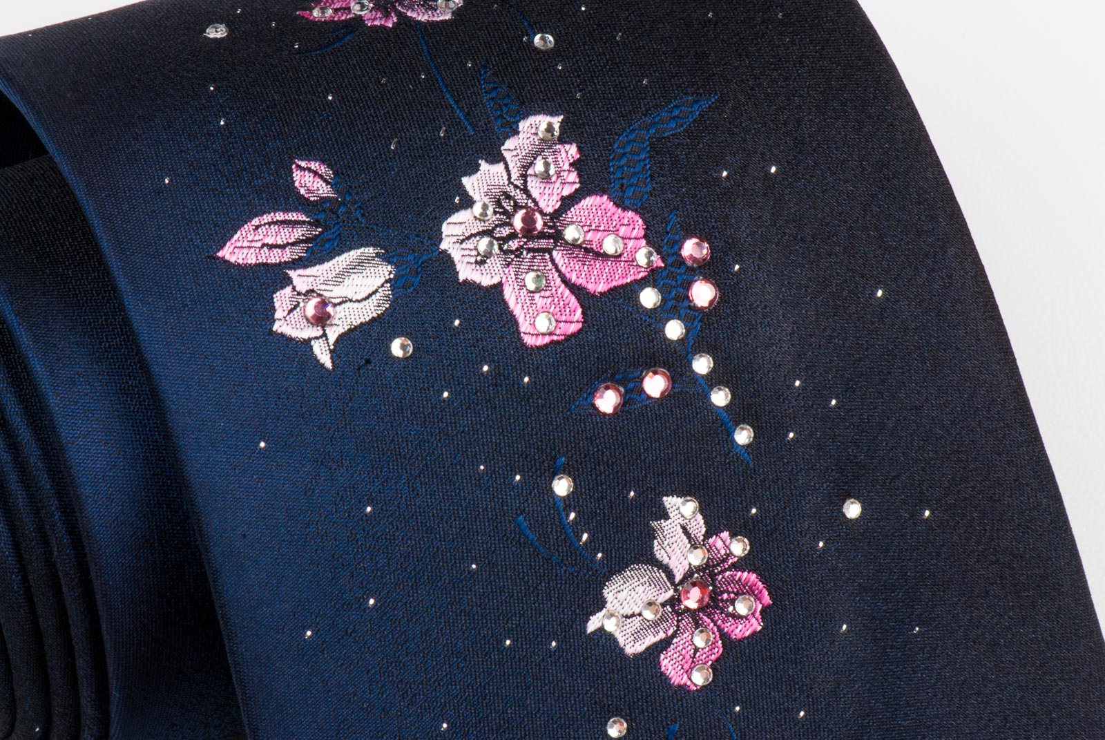 Material - SilkDesign - FloralColor - Black, PinkLength - Classic (57 in.-60 in.)(145 cm-153 cm)Width - Classic (3 1/4 in.-3 3/4 in.)(8 cm-9.5 cm)Special Features - Pink Rhinestones, Rhinestones, White Rhinestones