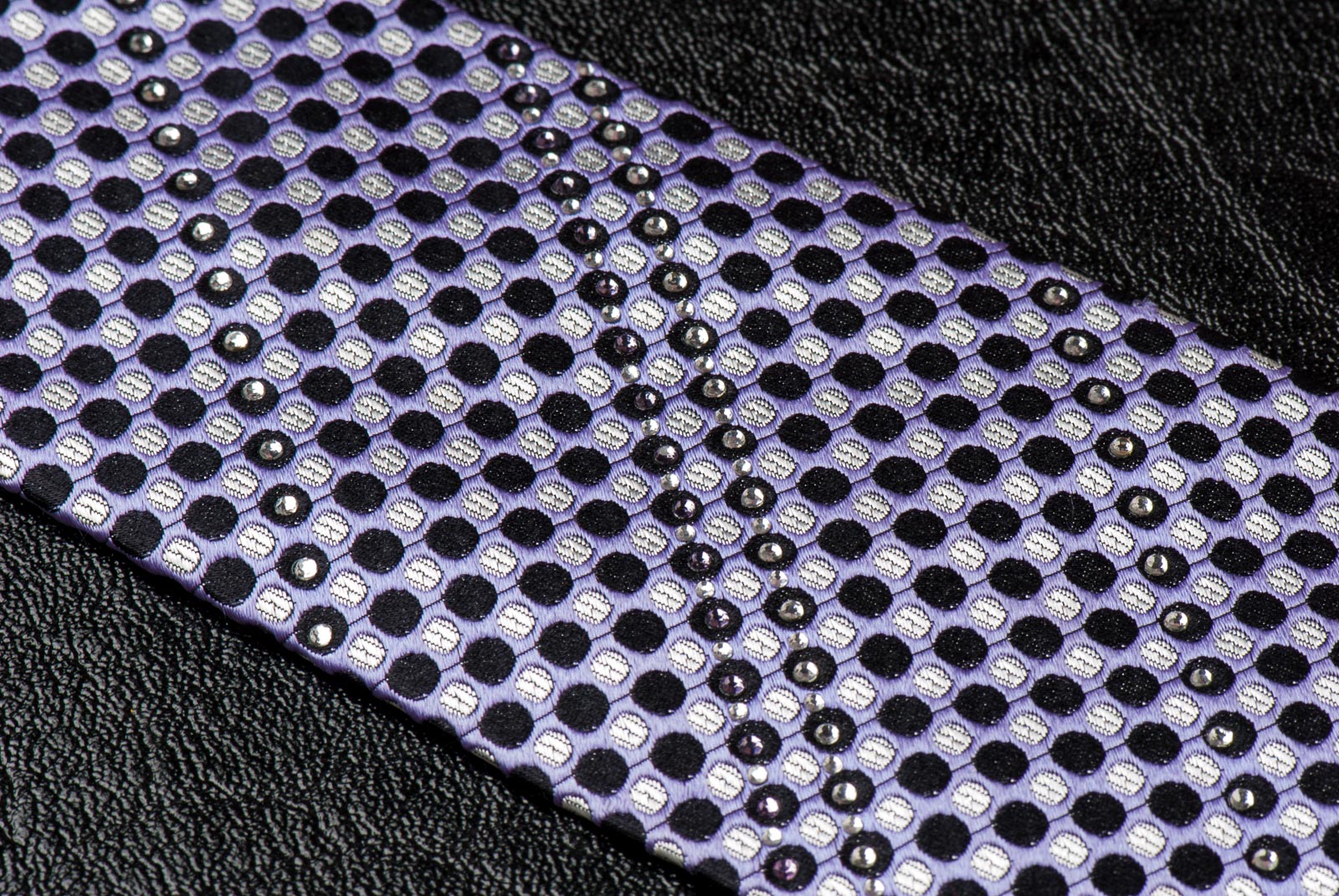 Material - SilkDesign - DotsColor - Black, Mauve, SilverLength - Classic (57 in.-60 in.)(145 cm-153 cm)Width - Classic (3 1/4 in.-3 3/4 in.)(8 cm-9.5 cm)Special Features - Rhinestones