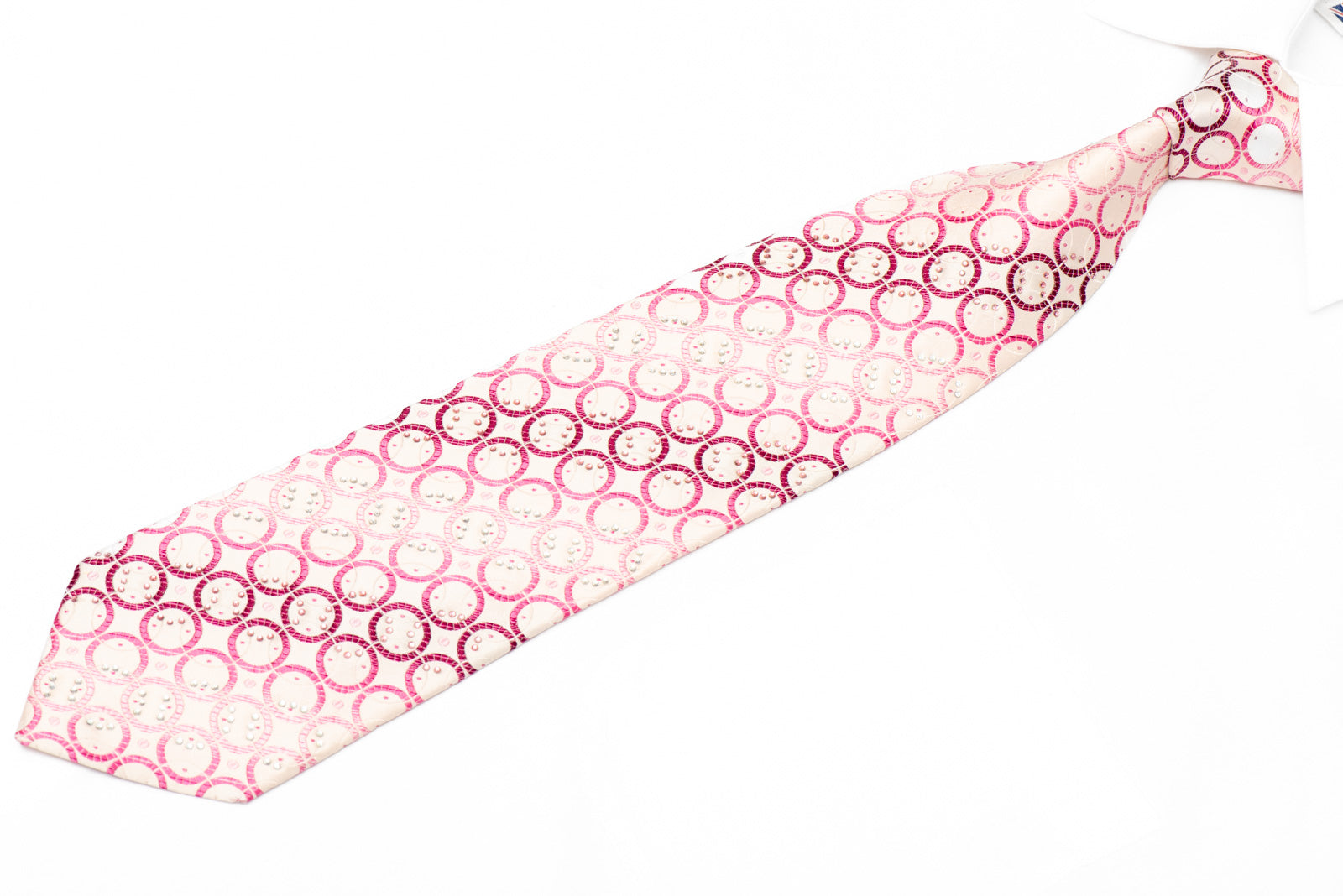 Pink Geometric Circles On Light Pink With Pink White Rhinestones & Pink Sparkles