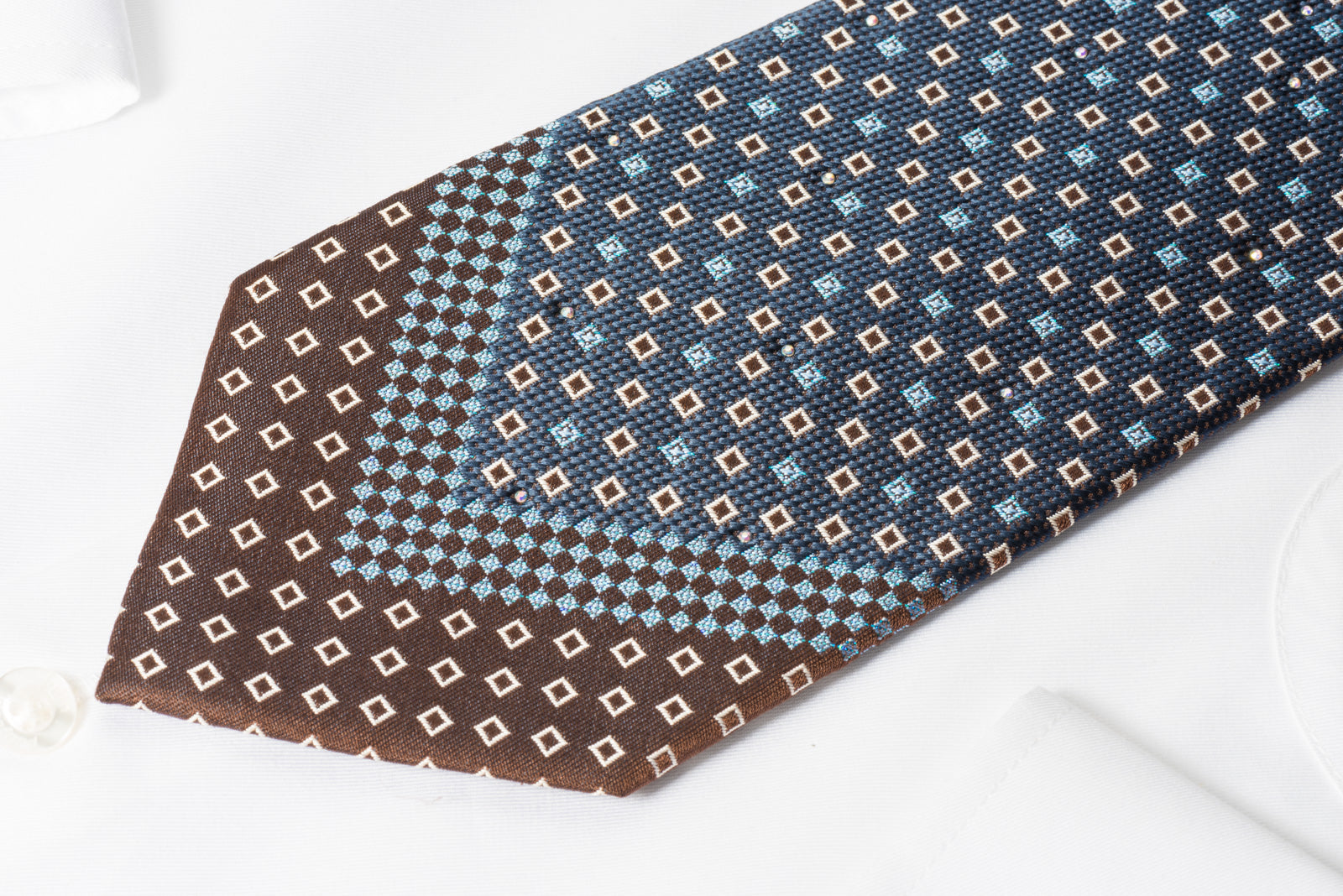 Material - SilkDesign - GeometricColor - Blue, Brown, WhiteLength - Classic (57 in.-60 in.)(145 cm-153 cm)Width - Special Features - Blue Sparkles, White Rhinestones