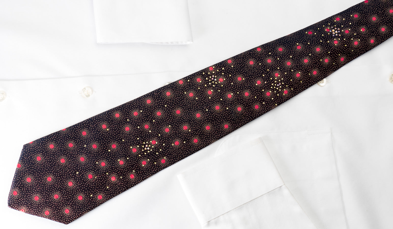 Material - SilkDesign - DotsColor - Black, Pink, PurpleLength - Classic (57 in.-60 in.)(145 cm-153 cm)Width - Classic (3 1/4 in.-3 3/4 in.)(8 cm-9.5 cm)Special Features - Silver Sparkles, White Rhinestones