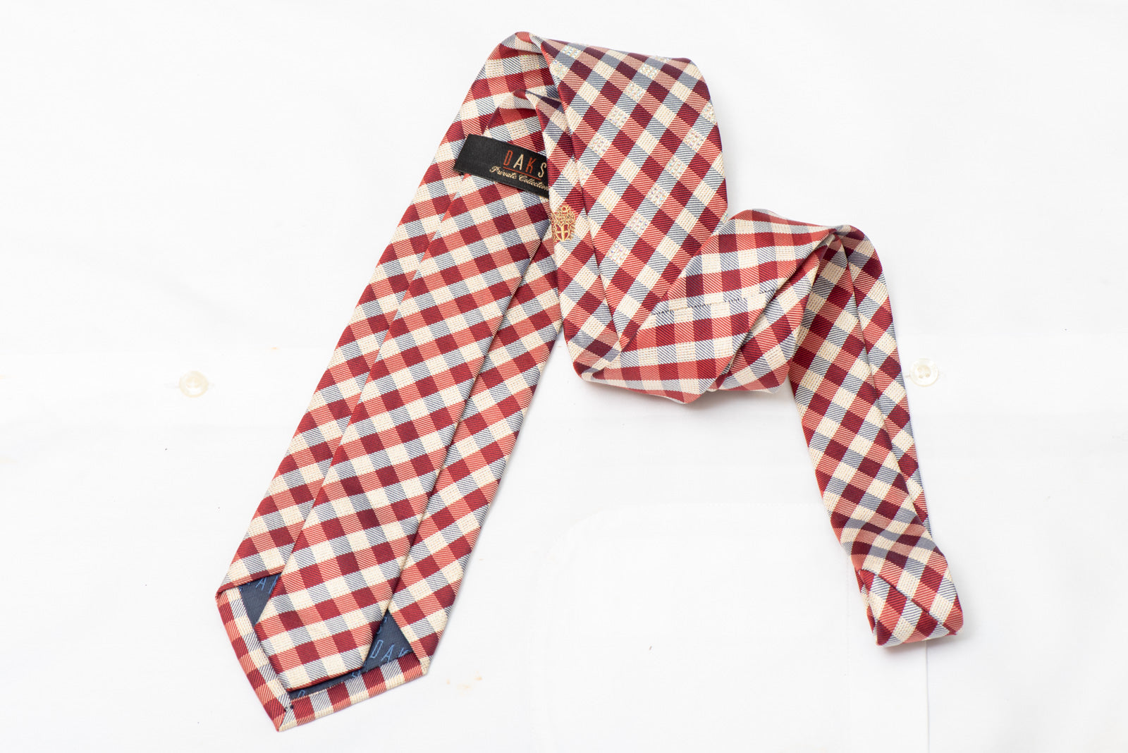 Rhinestone Gingham Silk Necktie – Red & Cream
