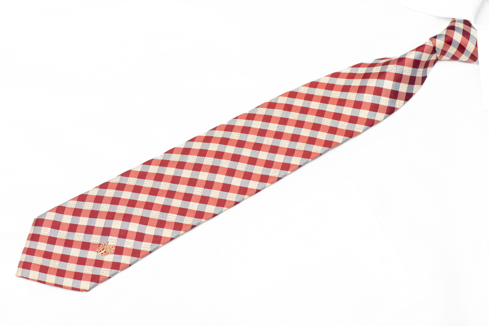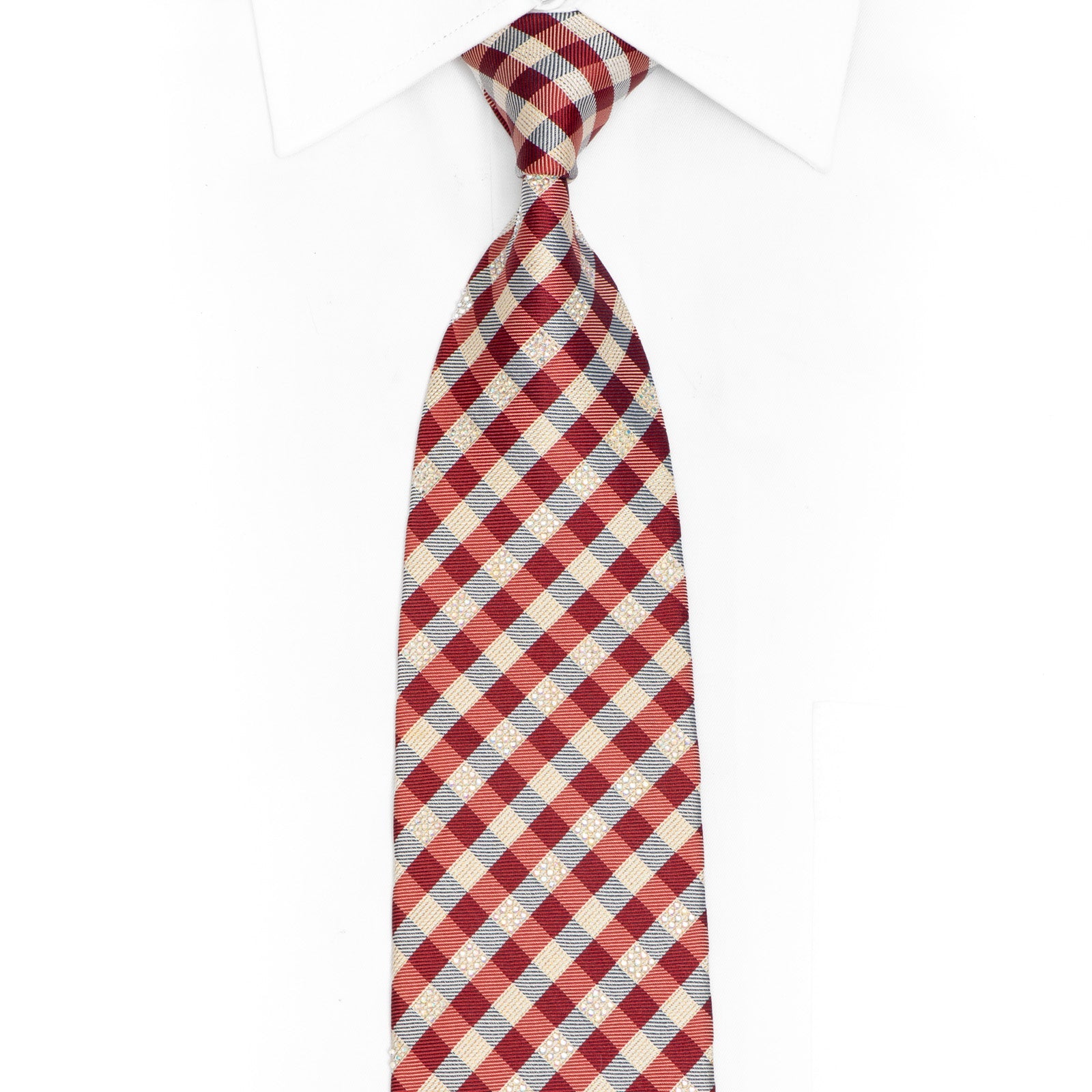 Rhinestone Gingham Silk Necktie – Red & Cream - 1