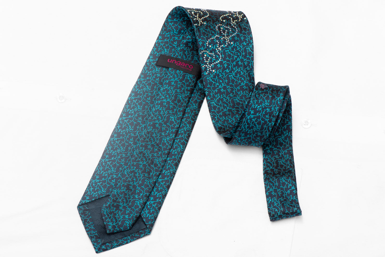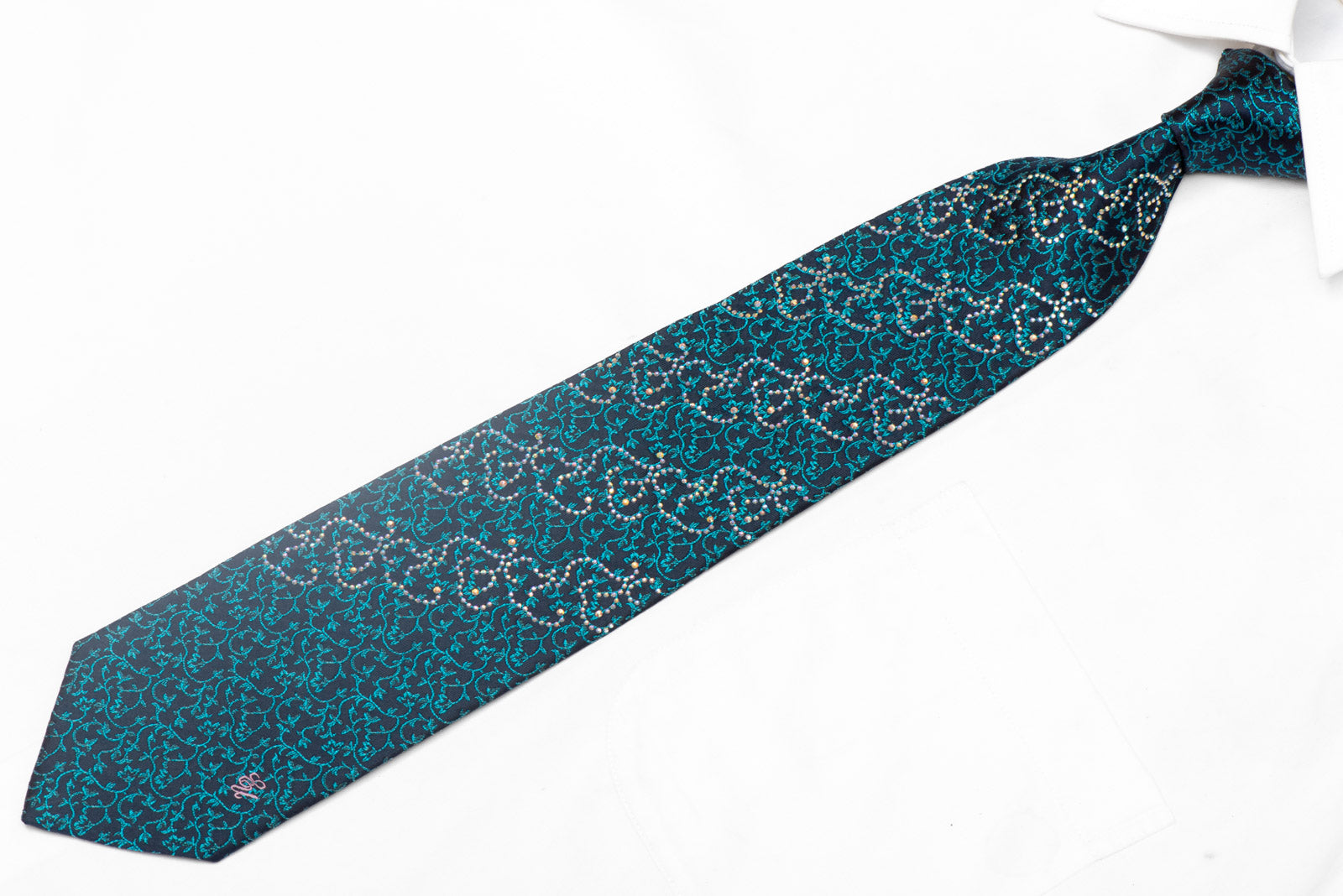 Add some elegance to your wardrobe with our Rhinestone Scrolls & Floral On Navy Blue With Turquoise Sparkles design.