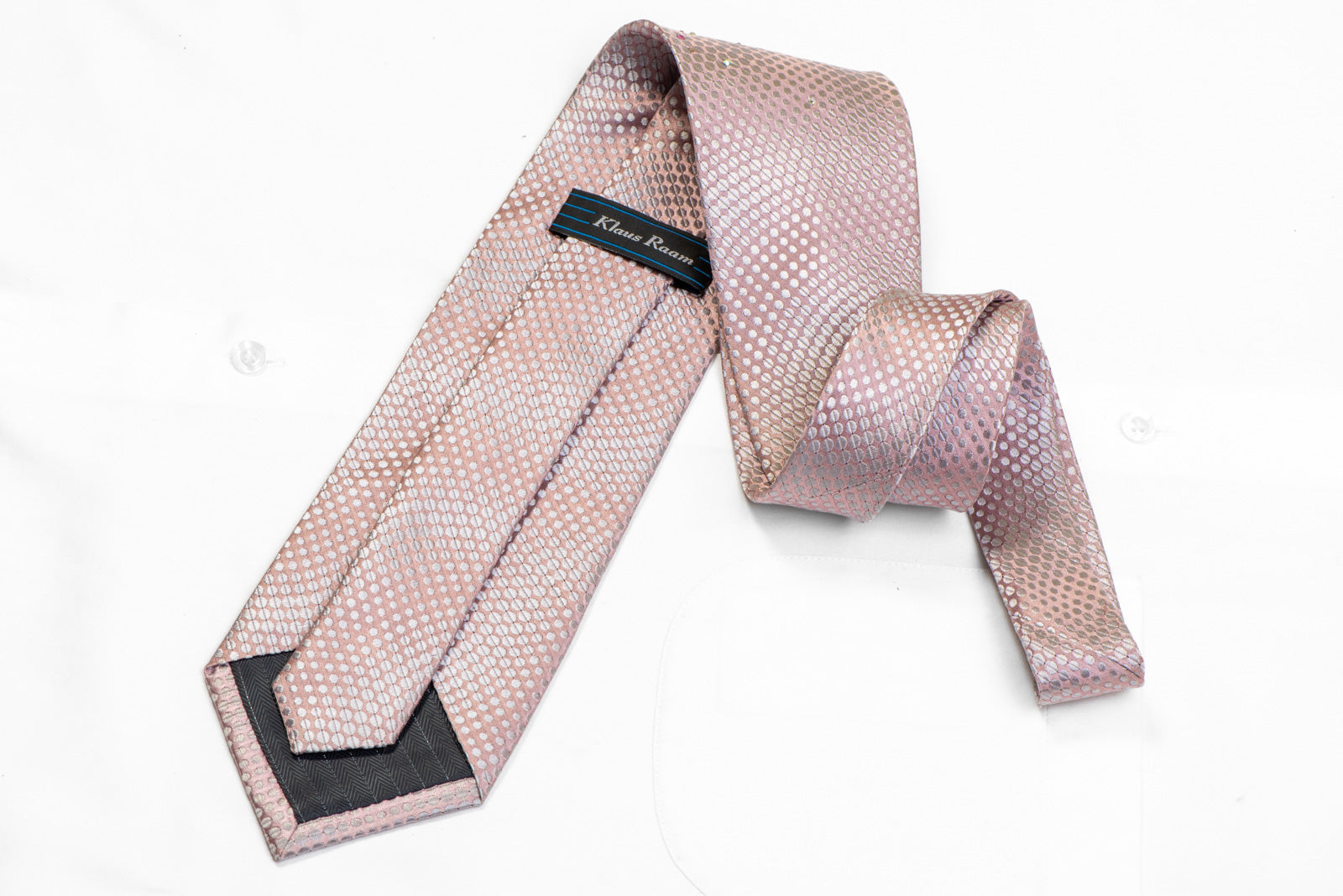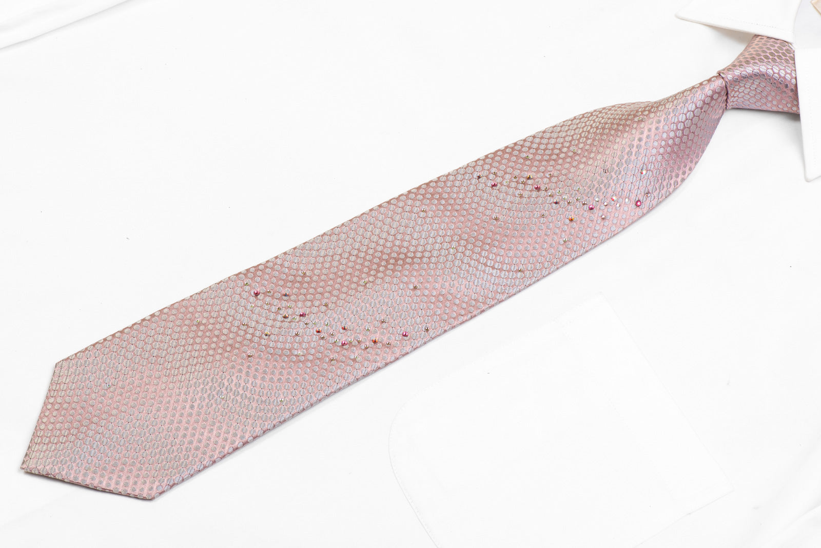 Silver Geometric Dots On Salmon Pink Rhinestone Silk Tie