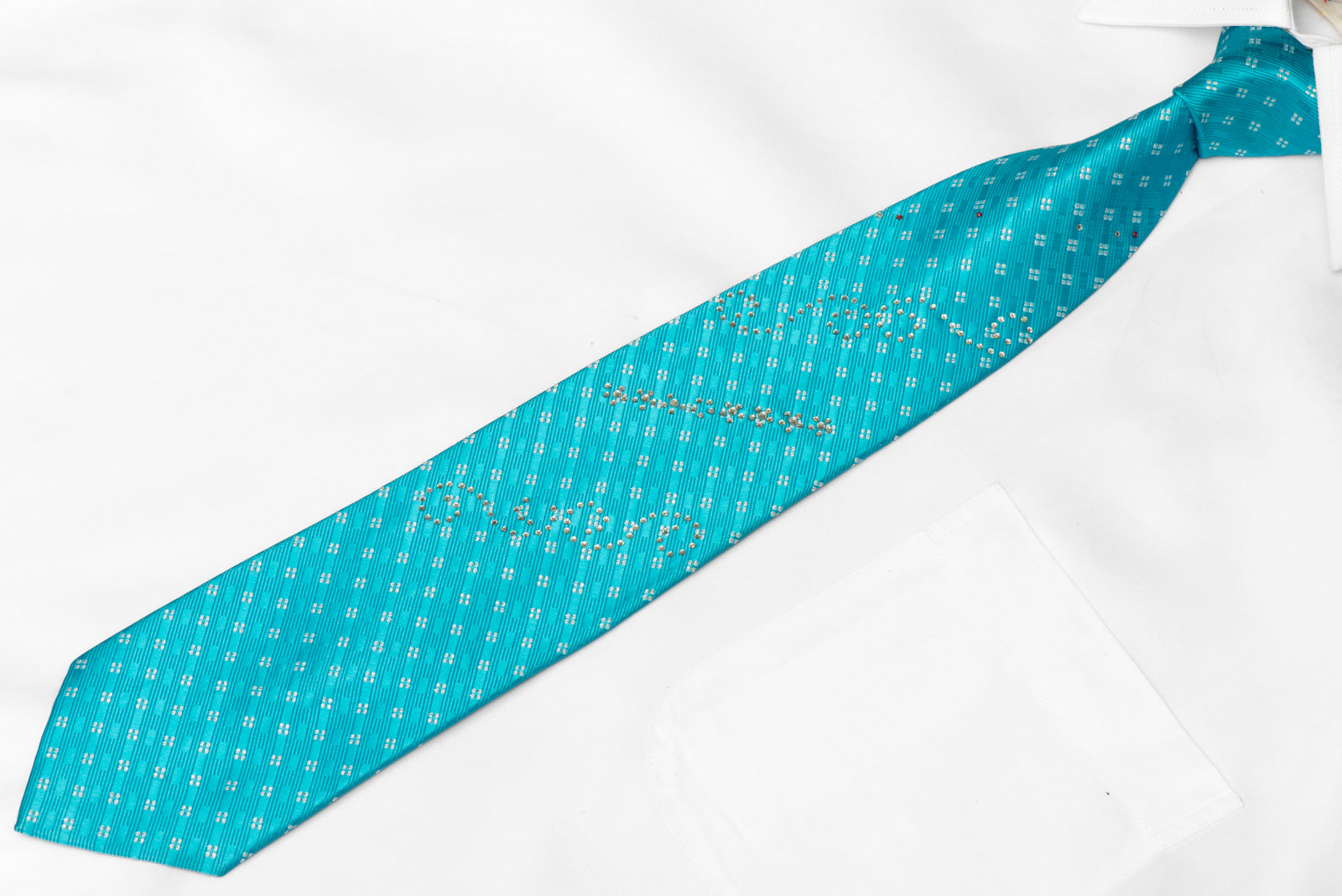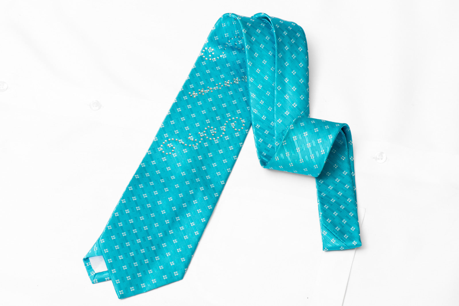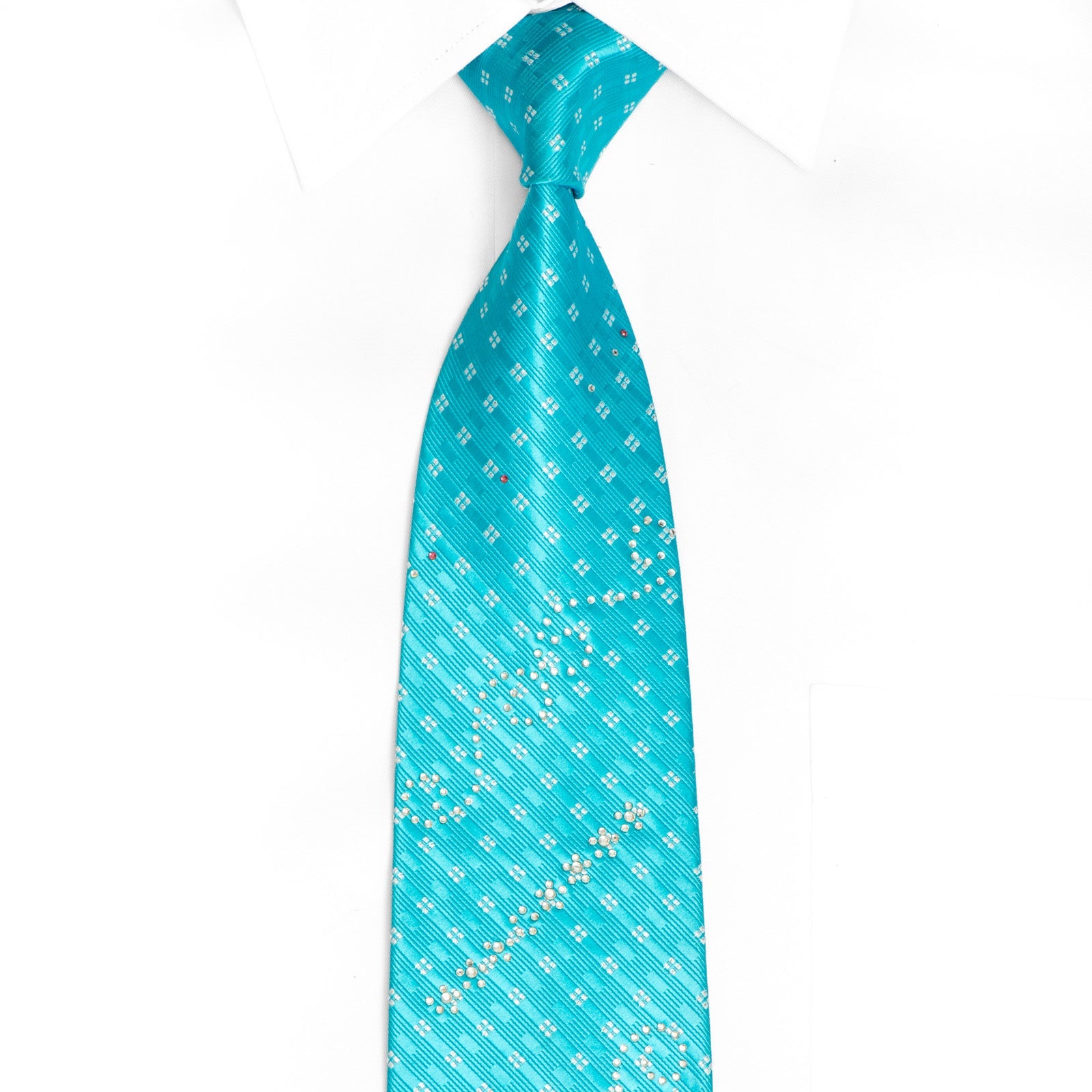 Material - MicrofiberDesign - GeometricColor - Bright BlueLength - Classic (48 in.-60 in.)(145cm-153 cm)Width - Classic (3 1/4 in.-3 3/4 in.)(8 cm-9.5 cm)Special Features - Rhinestones, Silver SparklesBrand -