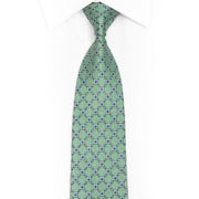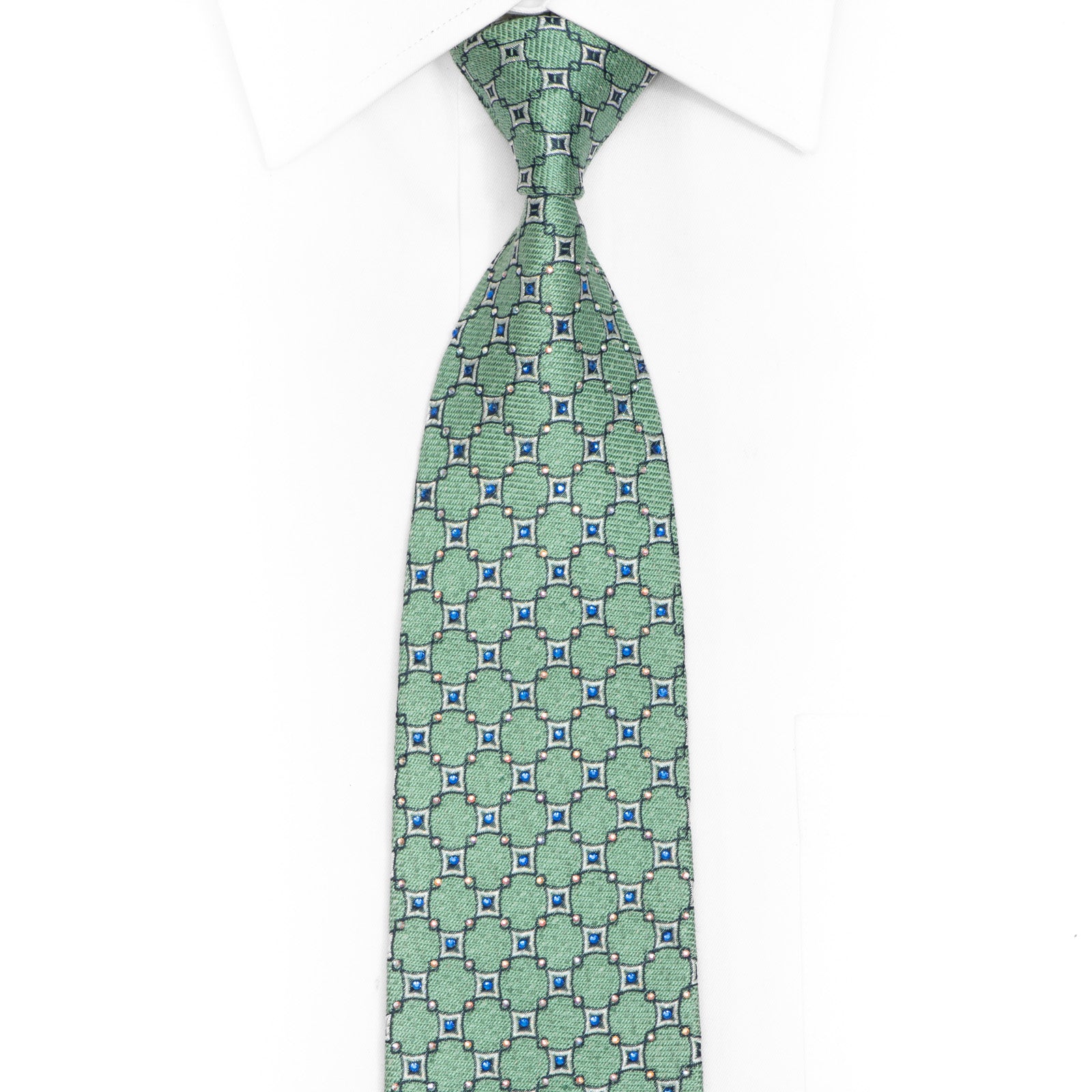 Silver Geometric On Mint Green Rhinestone Silk Necktie With Silver Sparkles
