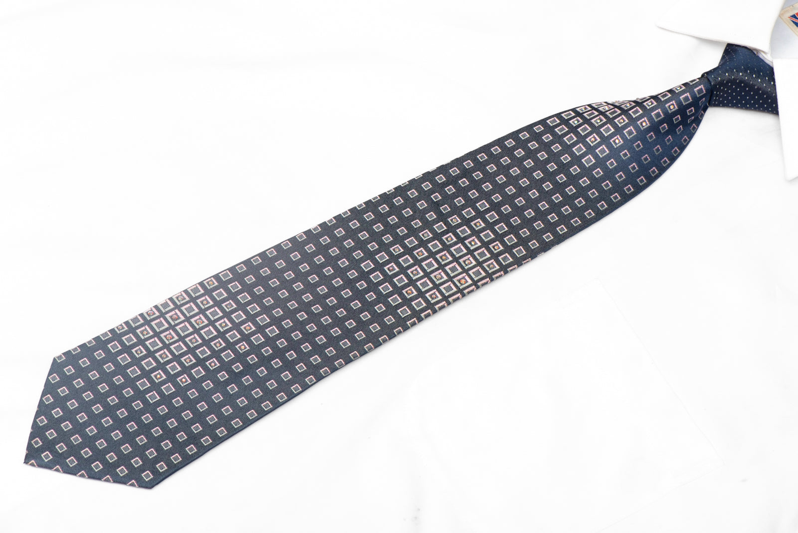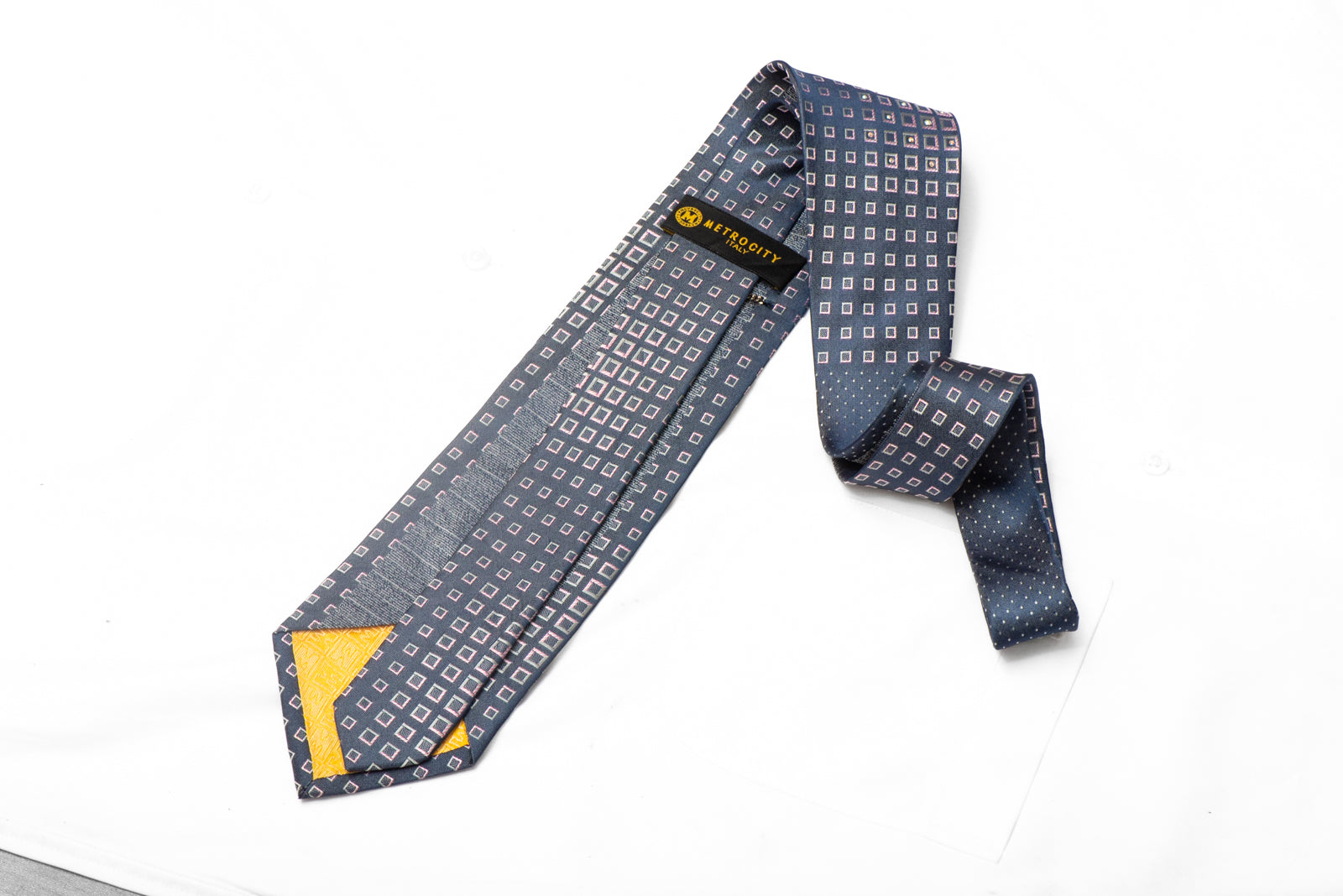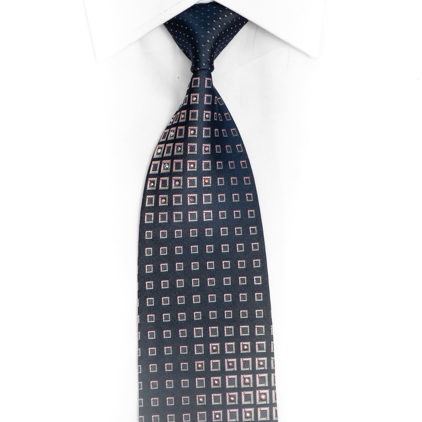 This Silver Geometric On Navy Rhinestone Silk Necktie is the perfect addition to any formal outfit!